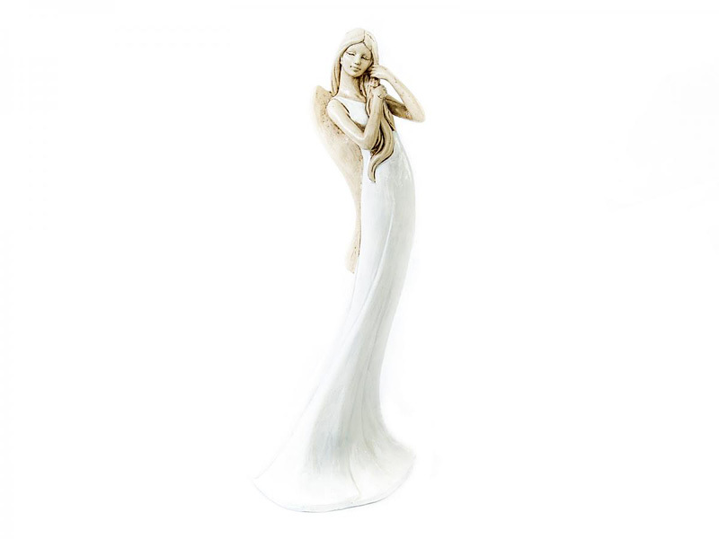 Jest wręcz idealna na ślub! I nie tylko dlatego, że ma kolor weselny, ale także dlatego, że kolor ten symbolizuje odnowienie, transformację, przejście w inny etap życia, coś nowego, czyli wszystko to, co wiąże się ze ślubem, jako ceremonią przejścia. Biały kolor sukienki anioła daje nadzieję na wkroczenie w zupełnie nowy etap życia, to swoisty powiew świeżości. Już zawsze ta figurka będzie przypominała Parze Młodej, że właśnie tego dnia rozpoczęło się dla nich coś wyjątkowego.