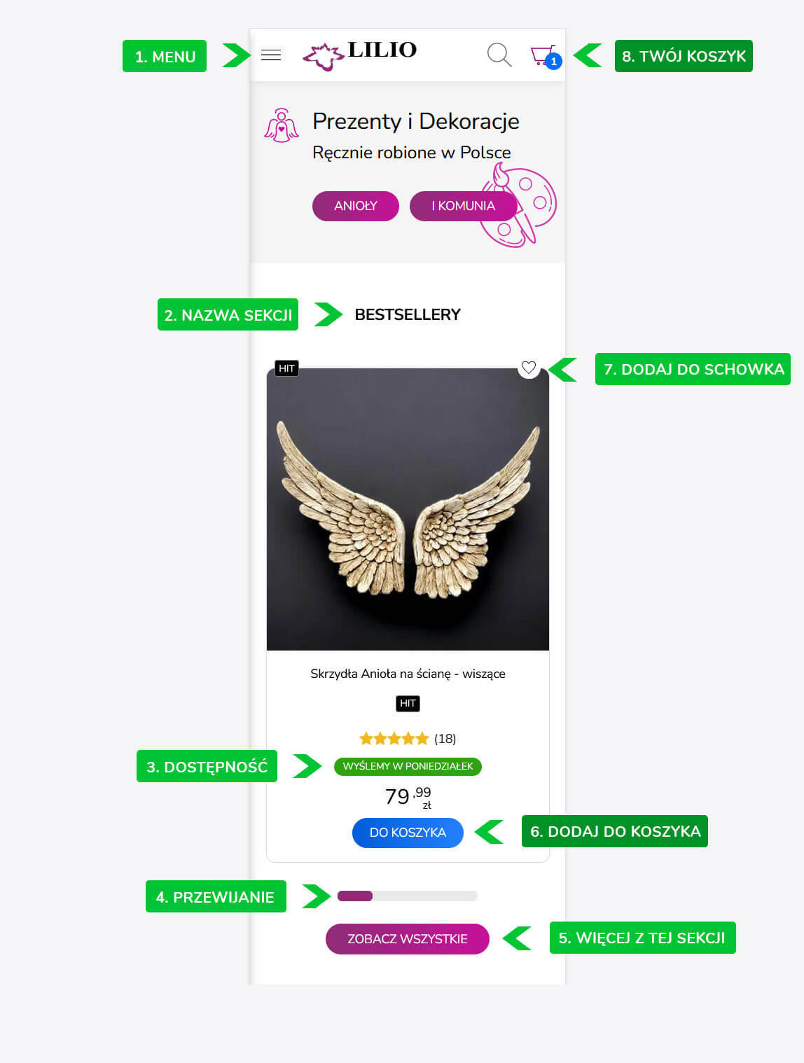 Przewijanie - ten pasek mówi że w sekcji jest więcej produktów - wystarczy przeciągnąć produkt w bok aby zobaczyć kolejne