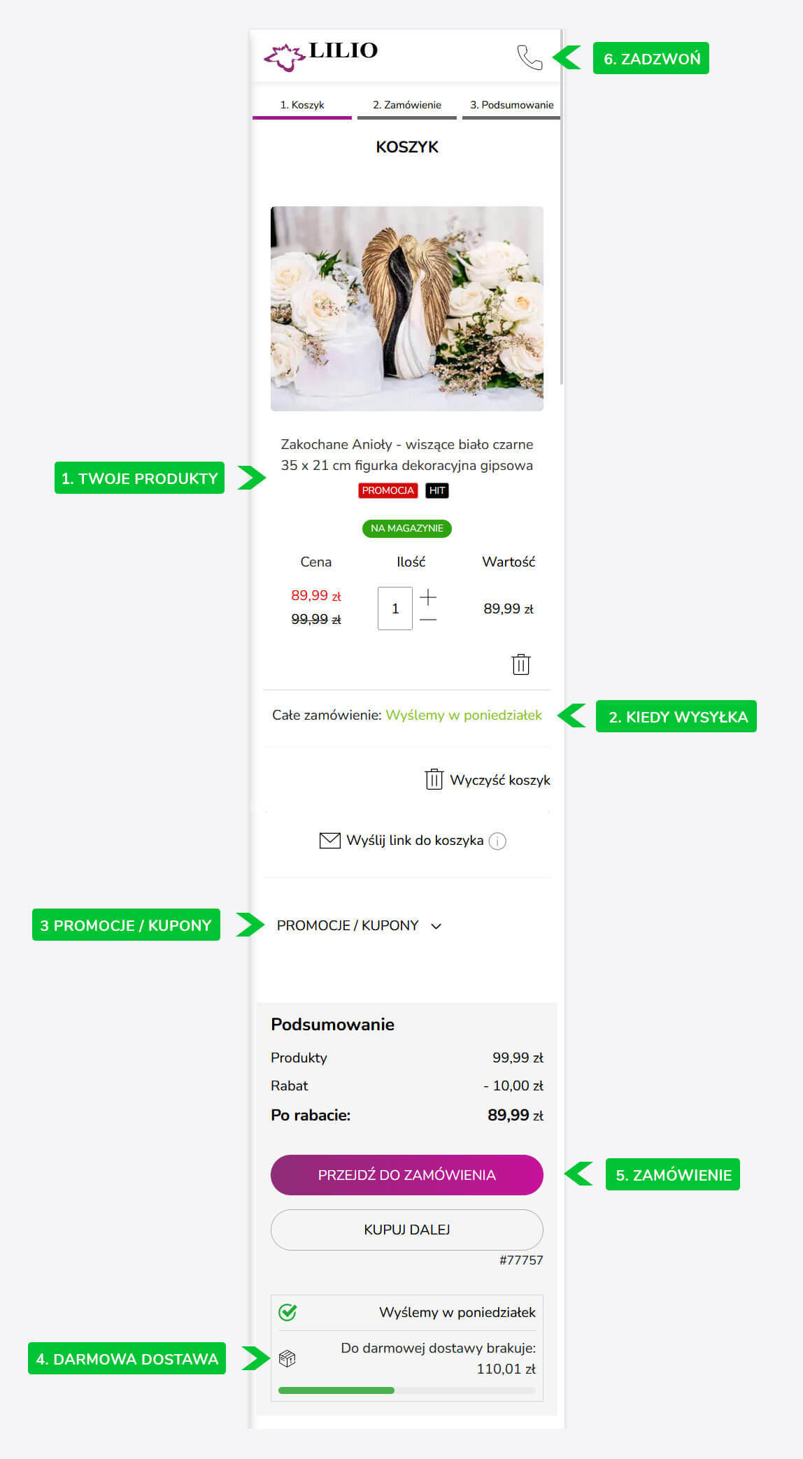 Zamówienie - tutaj klikasz żeby przejść do formularza zamówienia - podajesz swoje dane, wybierasz metodę dostawy / płatności