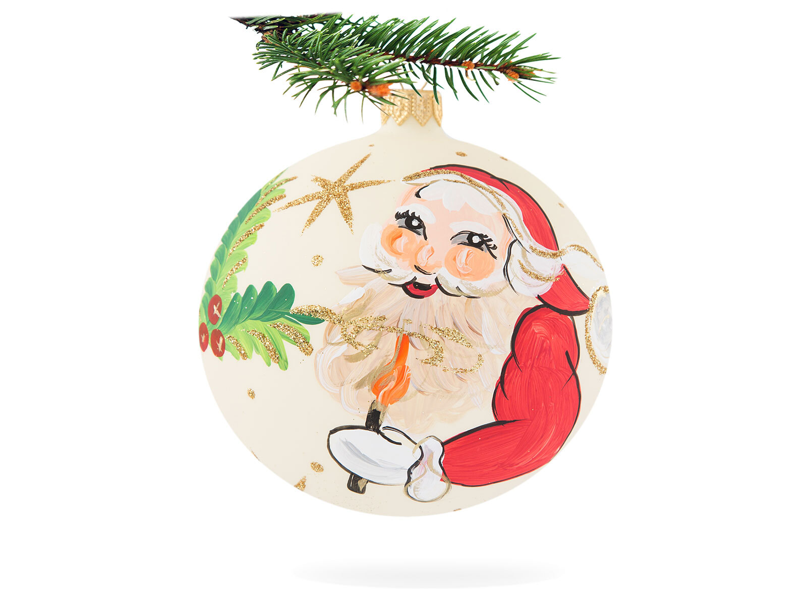 Mikołaj ze świecą na kremowym - 110 mm bombka choinkowa szklana 1 szt