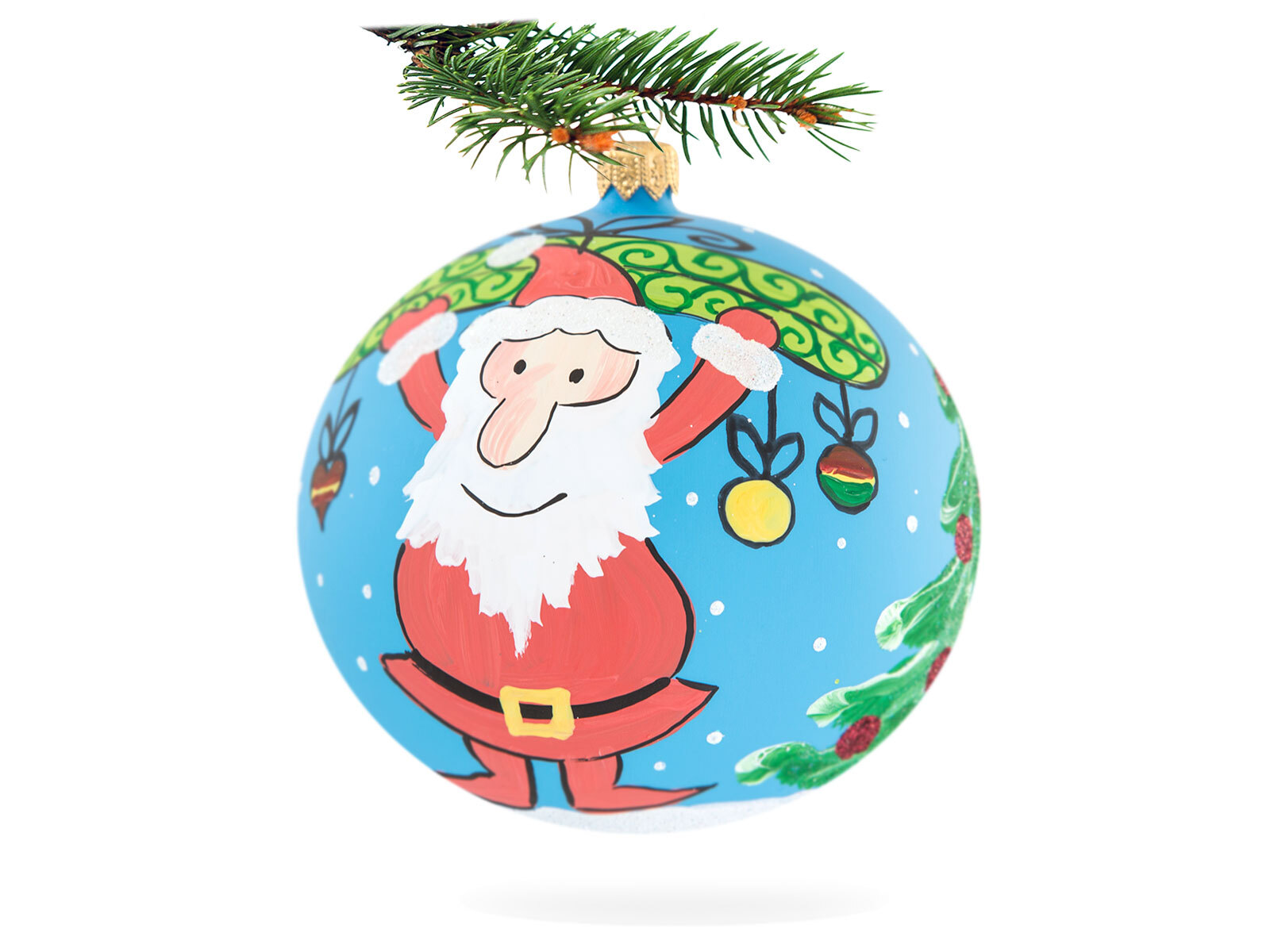 Mikołaj na niebieskim - 120 mm bombka choinkowa szklana 1 szt