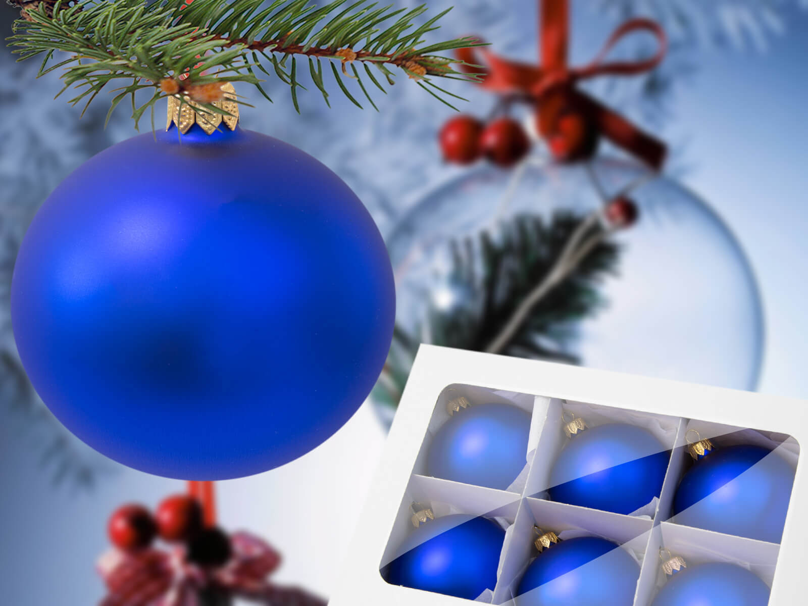Bombki szafirowy mat -  100 mm bombki choinkowe szklane 6 szt