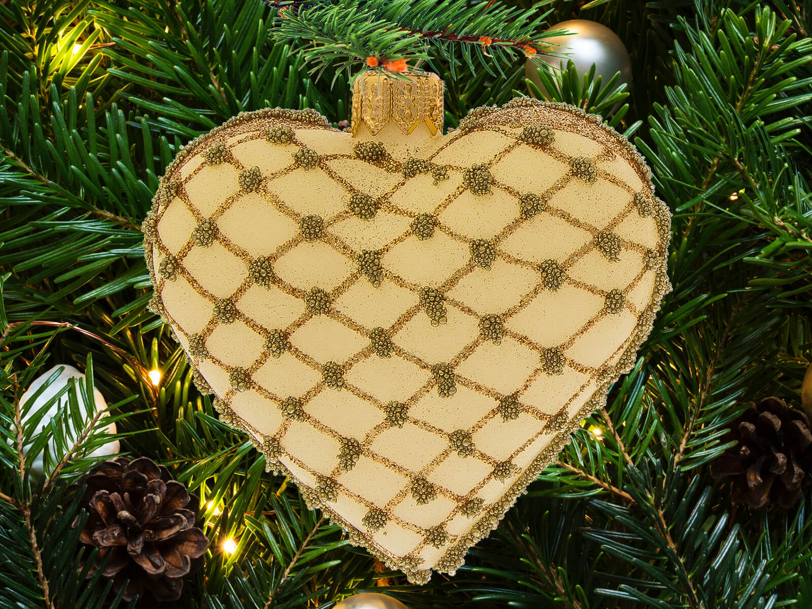 Bombka serce ecru złote - 8 x 7 cm bombki choinkowe szklane 1 szt