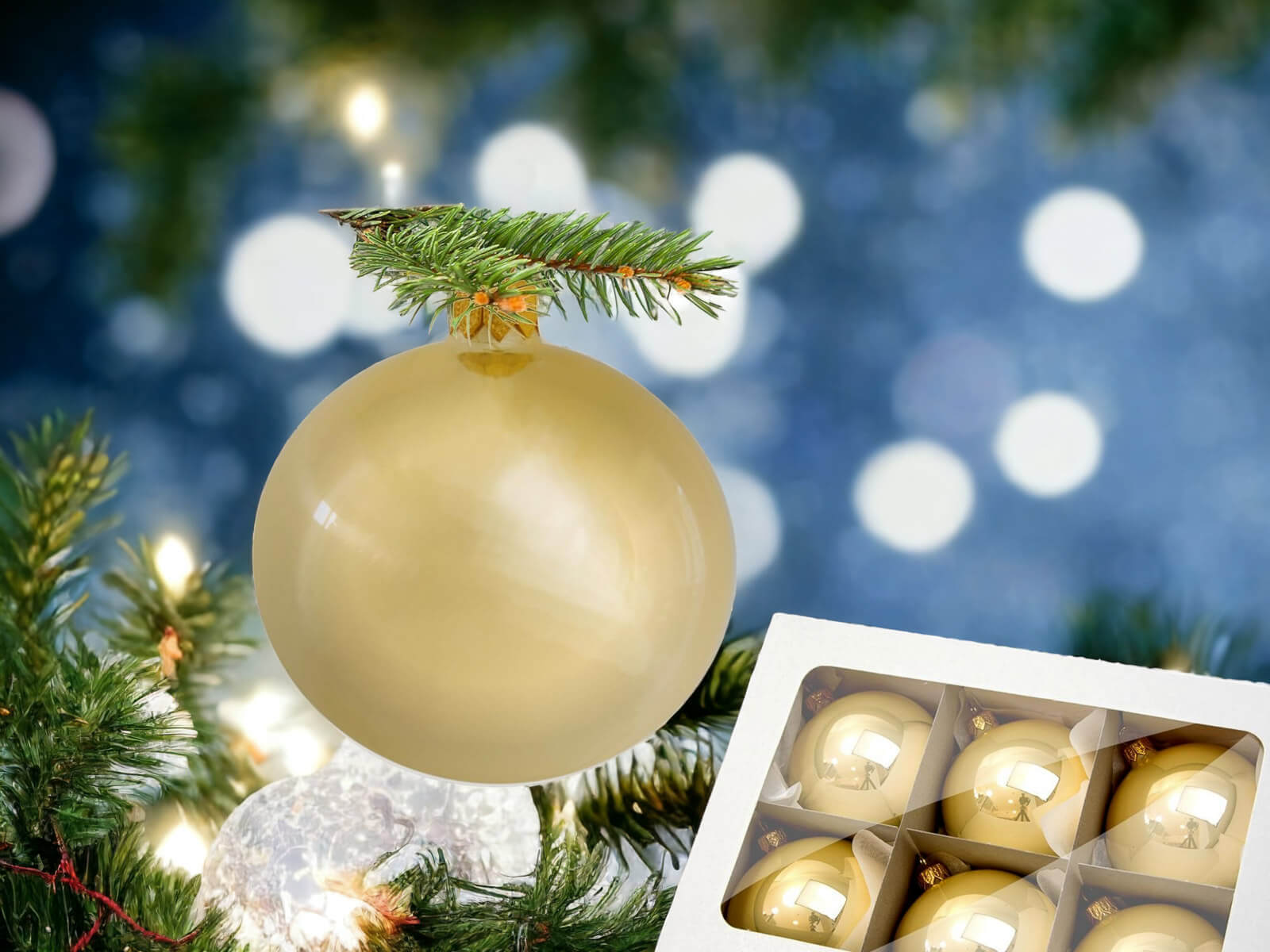 Bombki złoty błysk - 100 mm bombki choinkowe szklane 6 szt