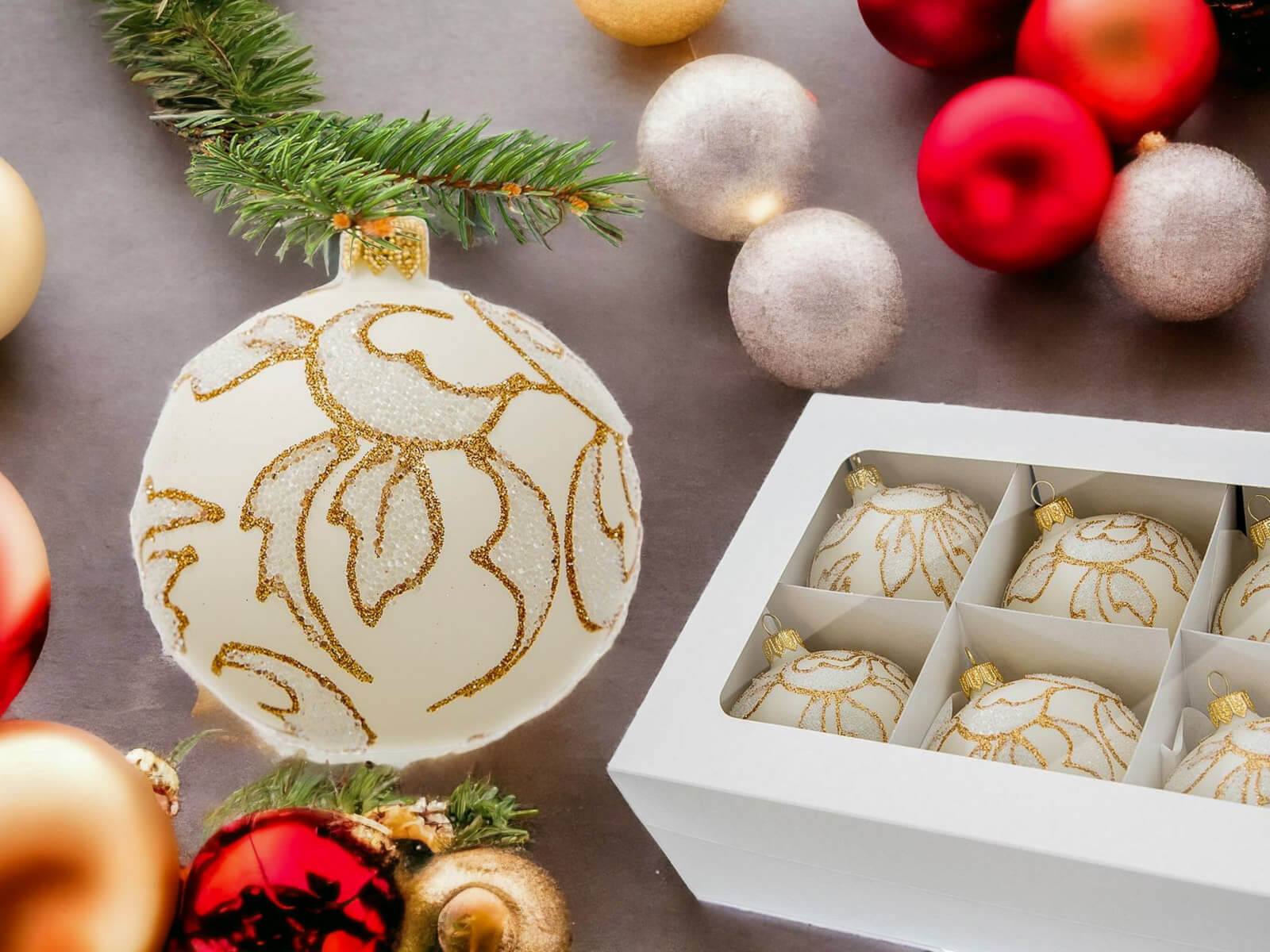 Bombki złote listki ecru -  80 mm  bombki choinkowe szklane 6 szt
