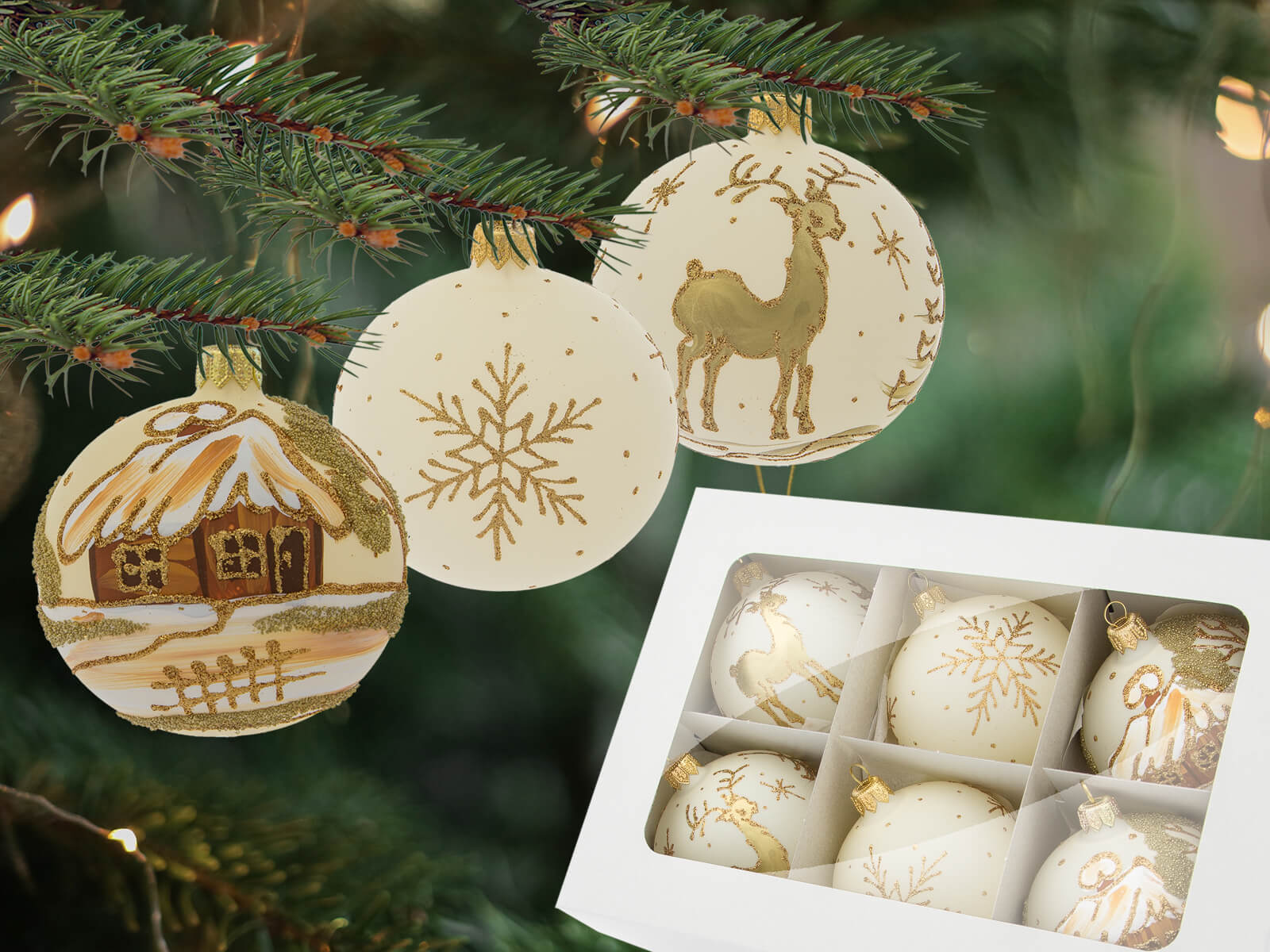 Bombki renifer chatka śnieżynka - 80 mm bombki choinkowe szklane 6 szt