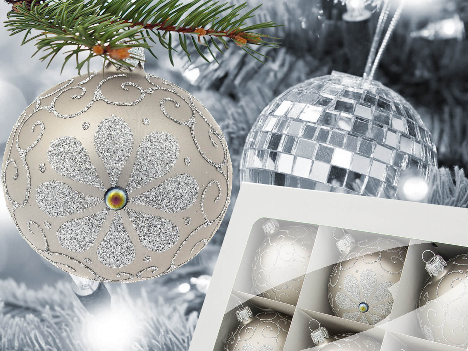 Bombki srebrny kwiatek - 80 mm bombki choinkowe szklane