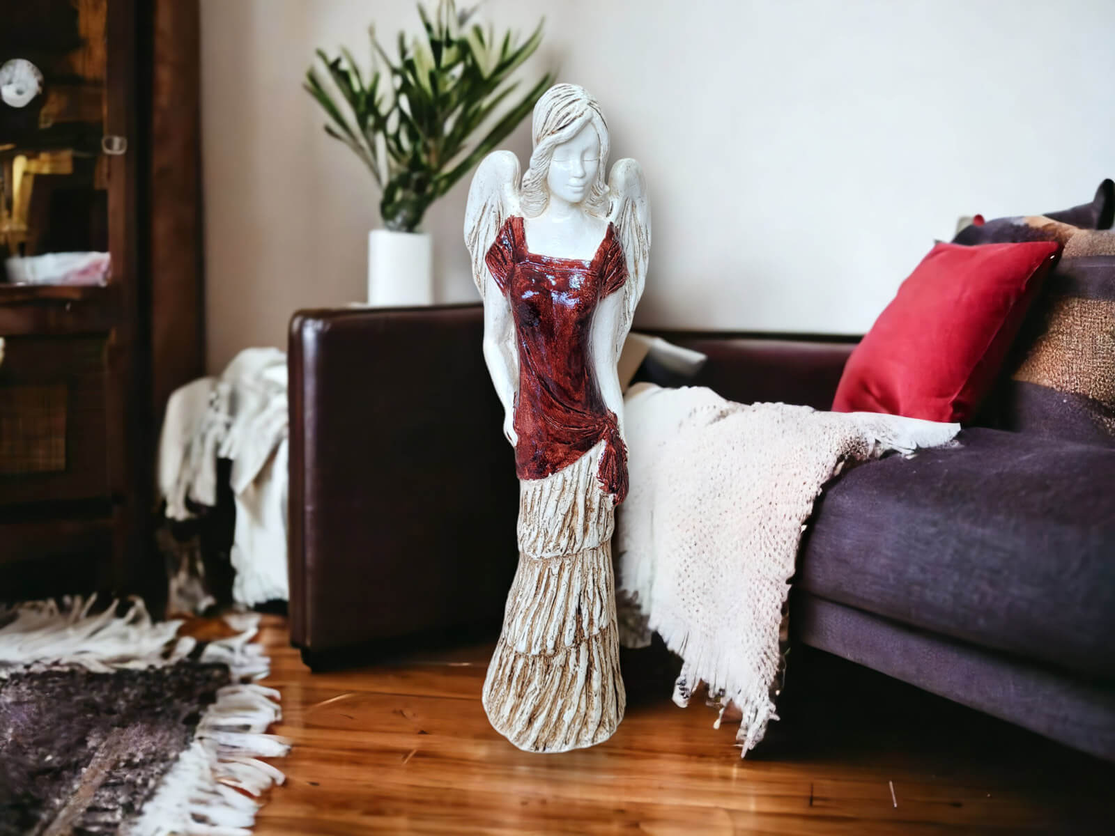 Anioł Julia - czerwony -  27 x 14 cm figurka dekoracyjna gipsowa