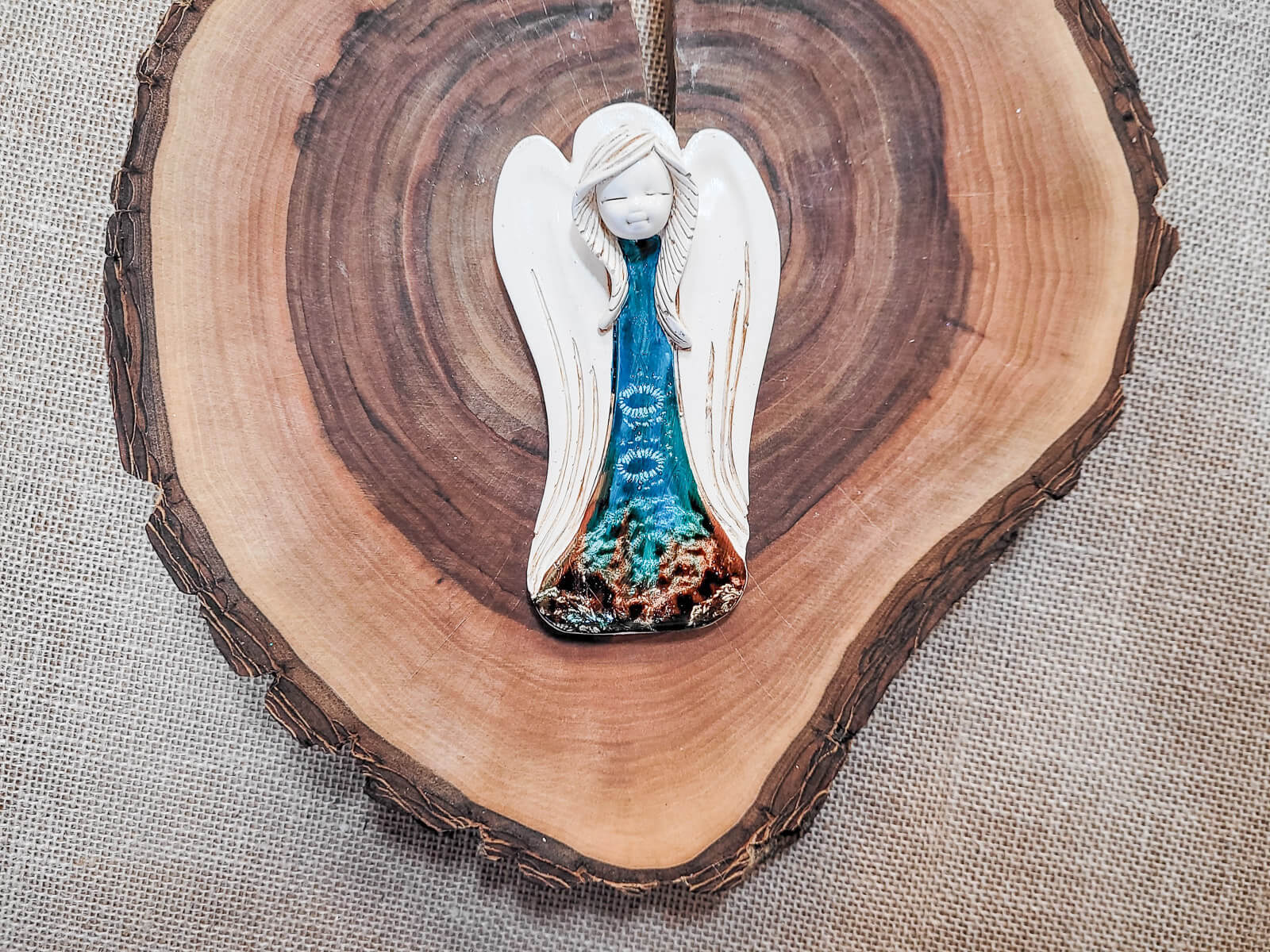 Aniołek Matilda  - turkus ciemny -  15 cm figurka dekoracyjna gipsowa