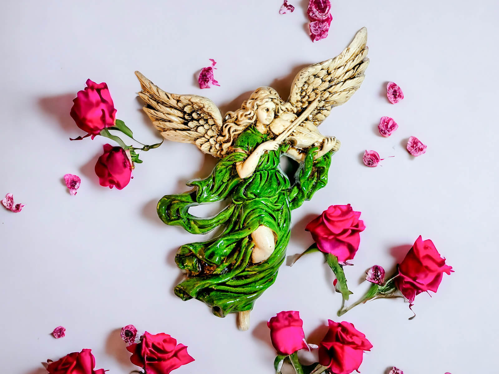 Anioł Abigail - zielony -  30 x 14 cm figurka dekoracyjna gipsowa