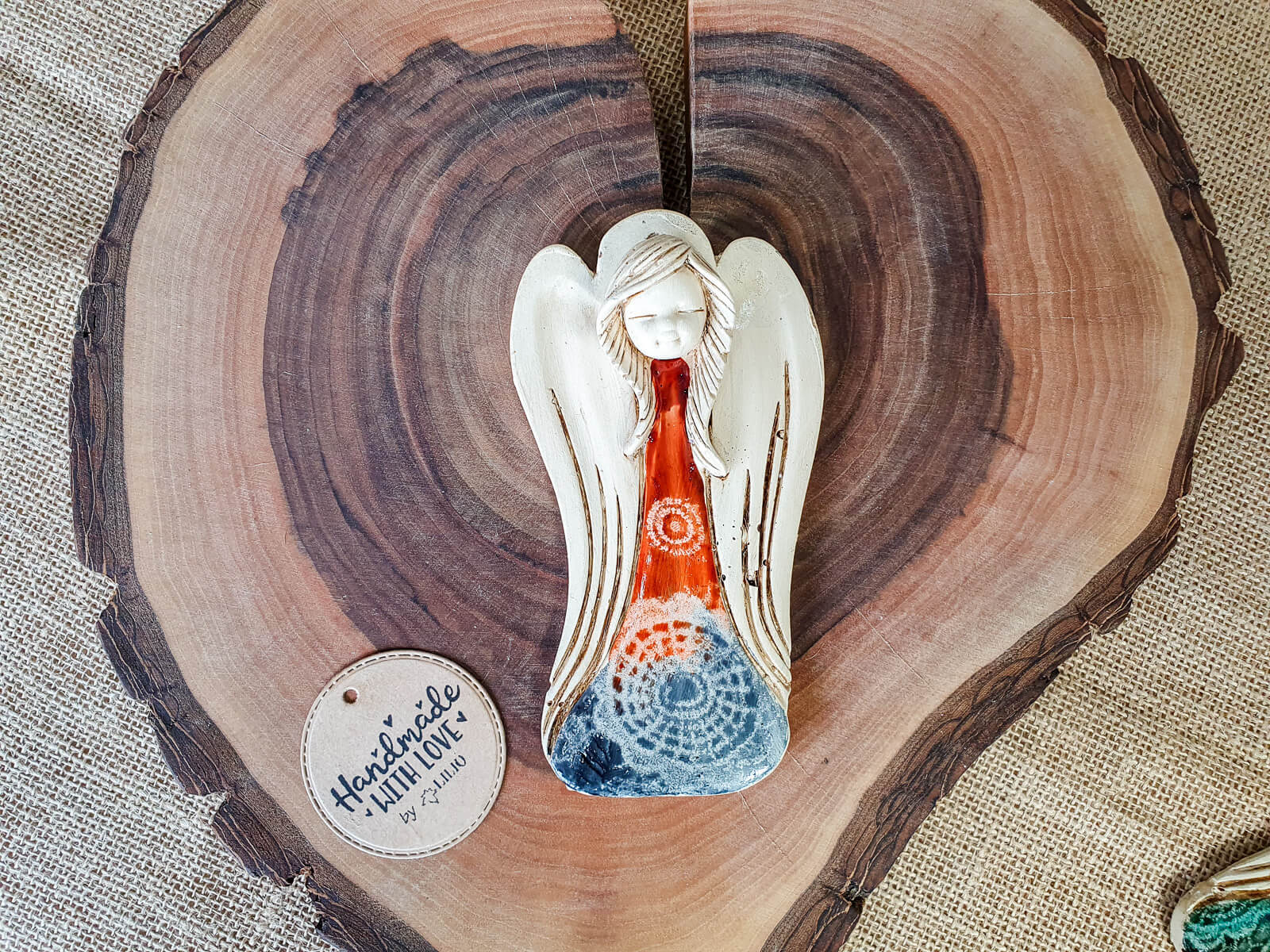 Anioł Julia - czerwony -  27 x 14 cm figurka dekoracyjna gipsowa
