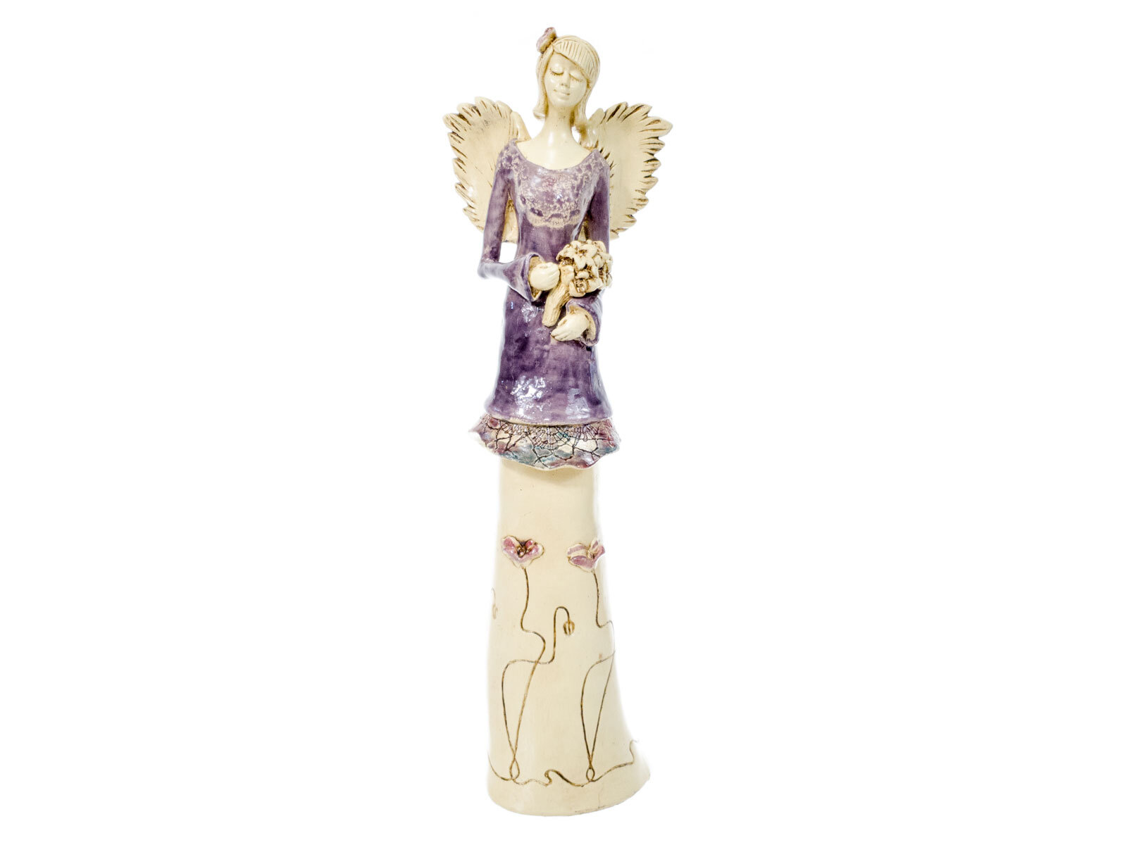 Anioł Mia - fiolet jasny -  40 x 16 cm figurka dekoracyjna gipsowa