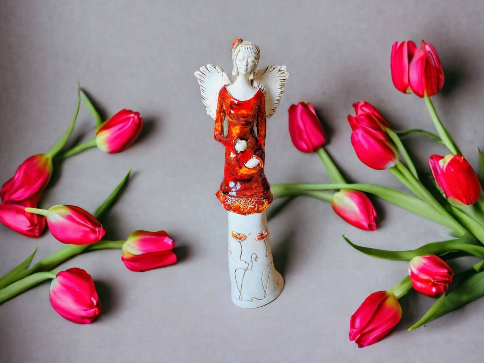 Anioł Julia - czerwony -  27 x 14 cm figurka dekoracyjna gipsowa