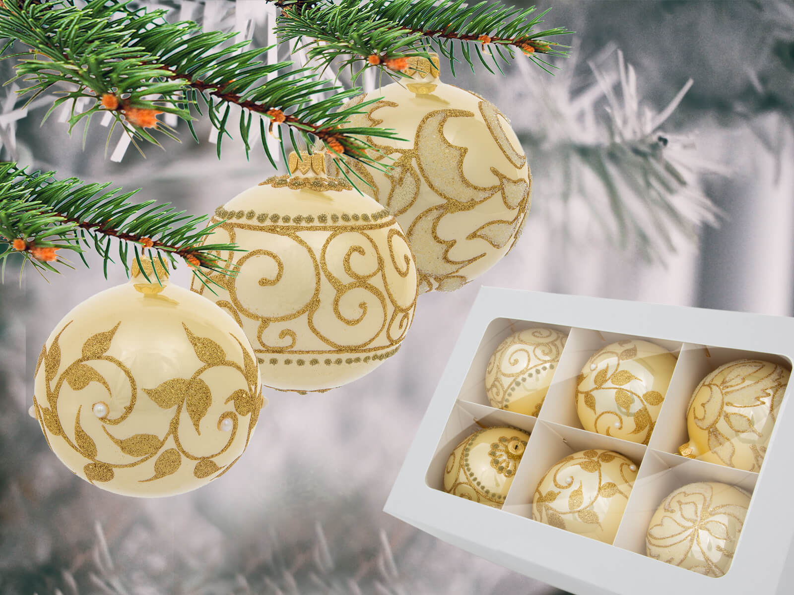 Bombki złoty brokat - 80 mm bombki choinkowe szklane 6 szt