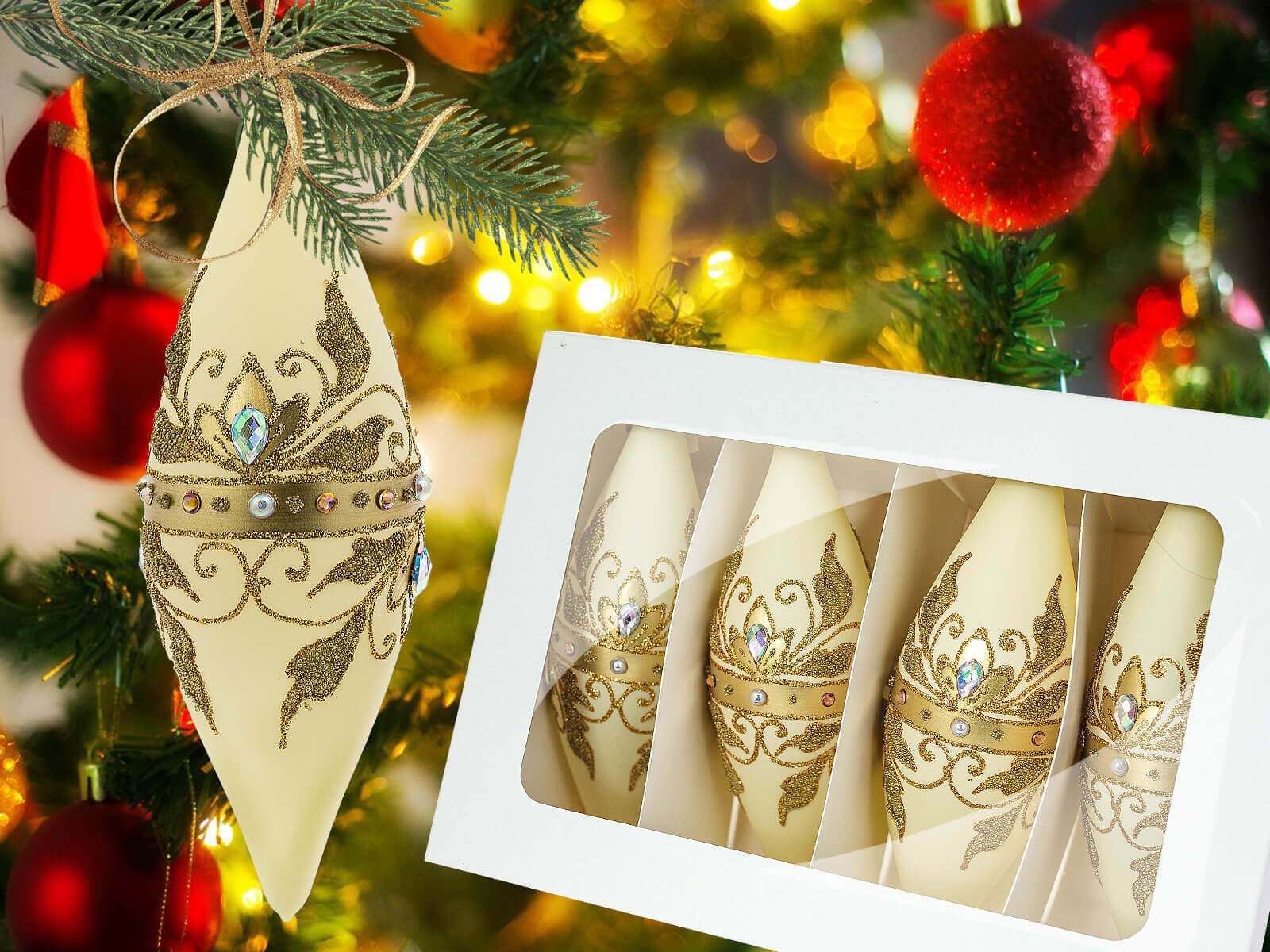 Sople Królewskie złote na wanilii - 180 mm bombki choinkowe szklane 4 szt