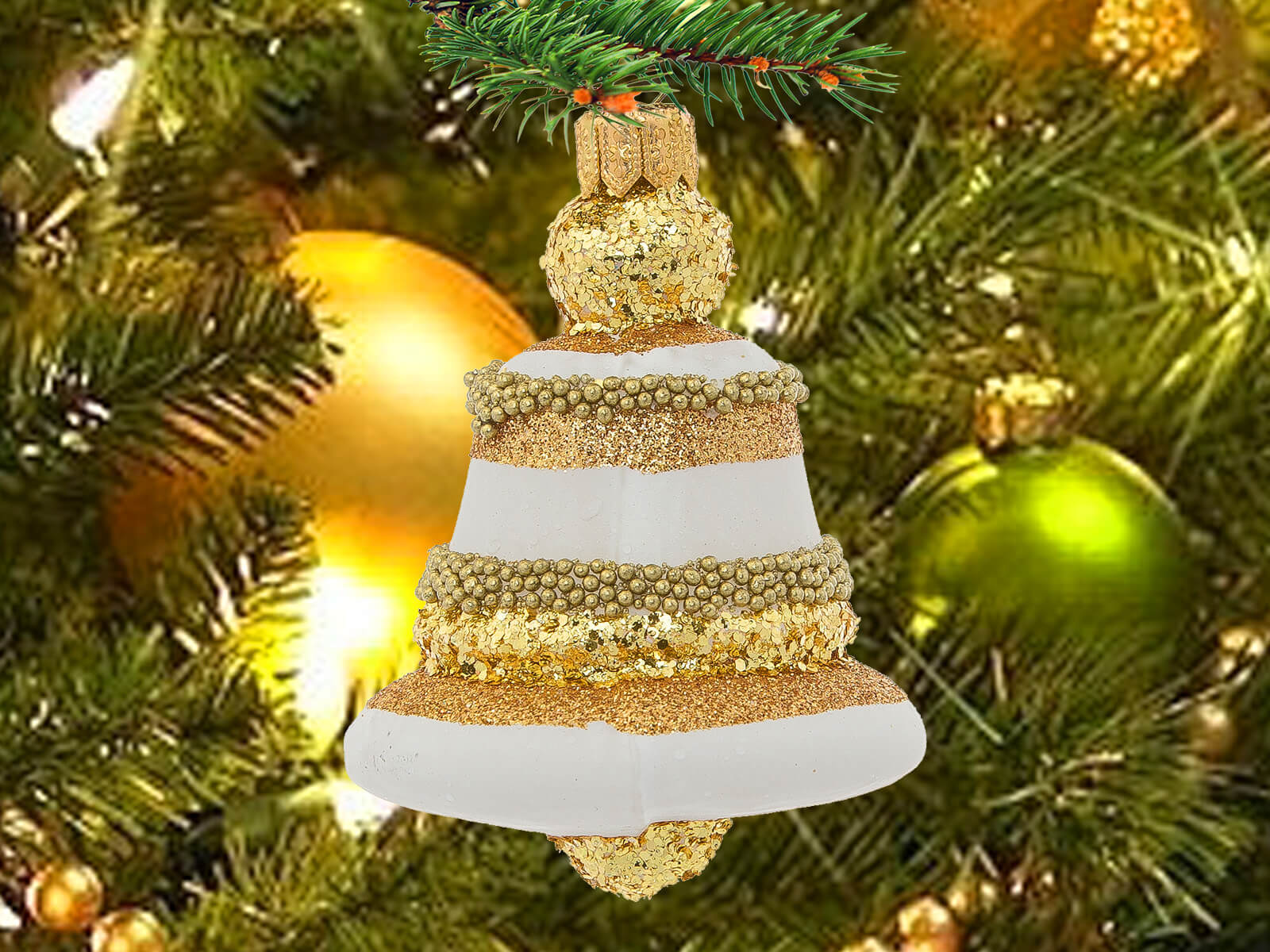 Dzwoneczek złoty biały - bombki choinkowe szklane 1 szt