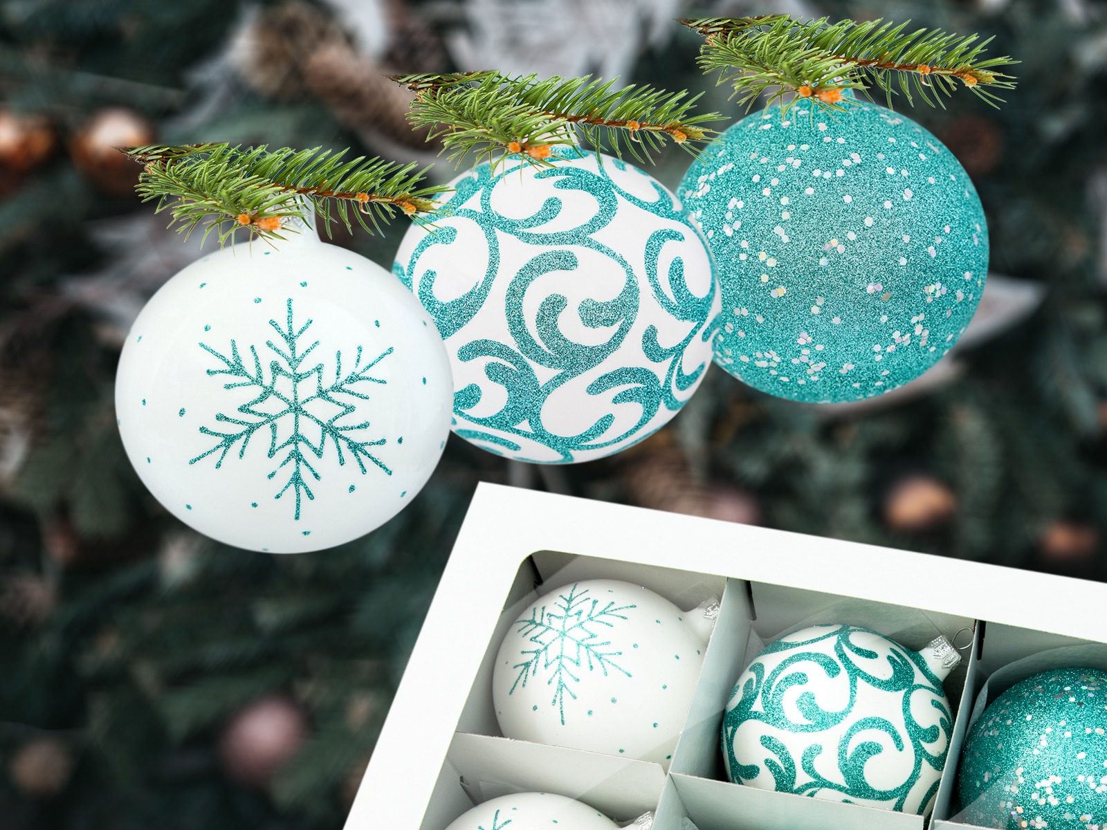 Bombki miętowy błysk - 80 mm bombki choinkowe szklane 6 szt