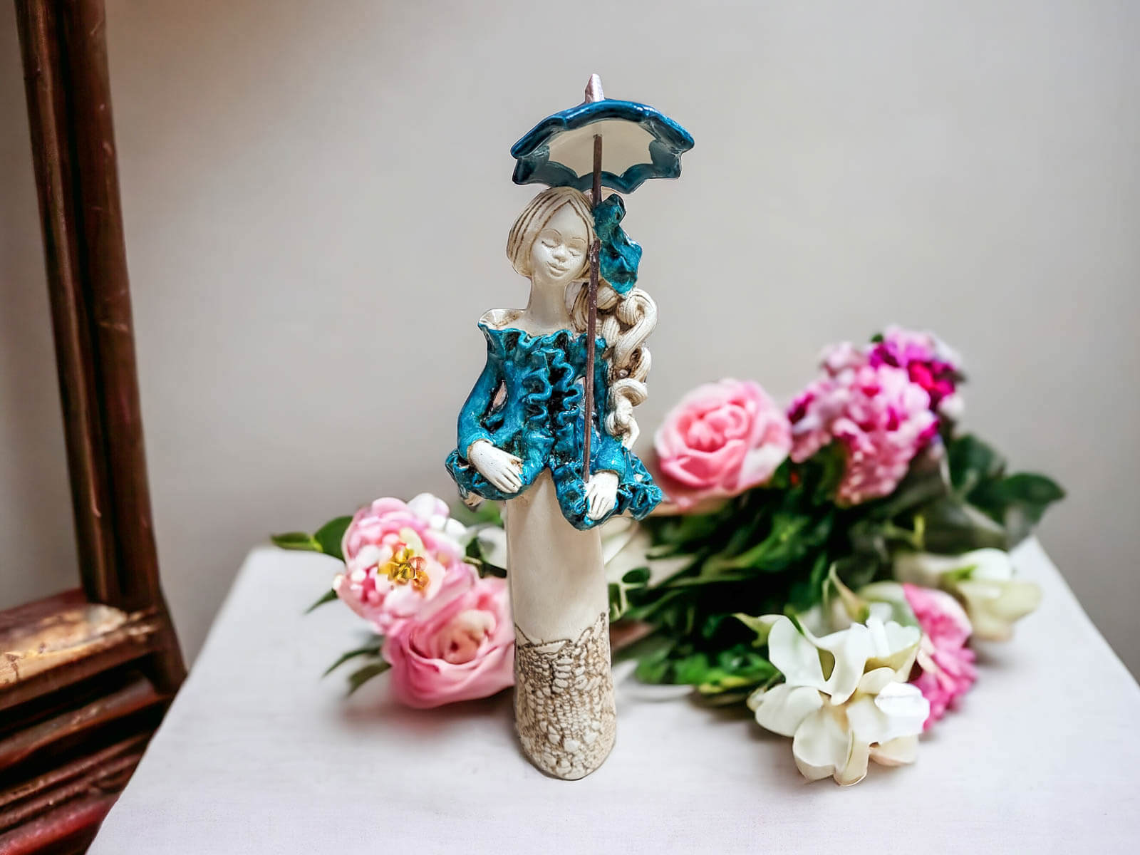 Anioł Florence - turkus ciemny - 32 x 15 cm figurka dekoracyjna gipsowa