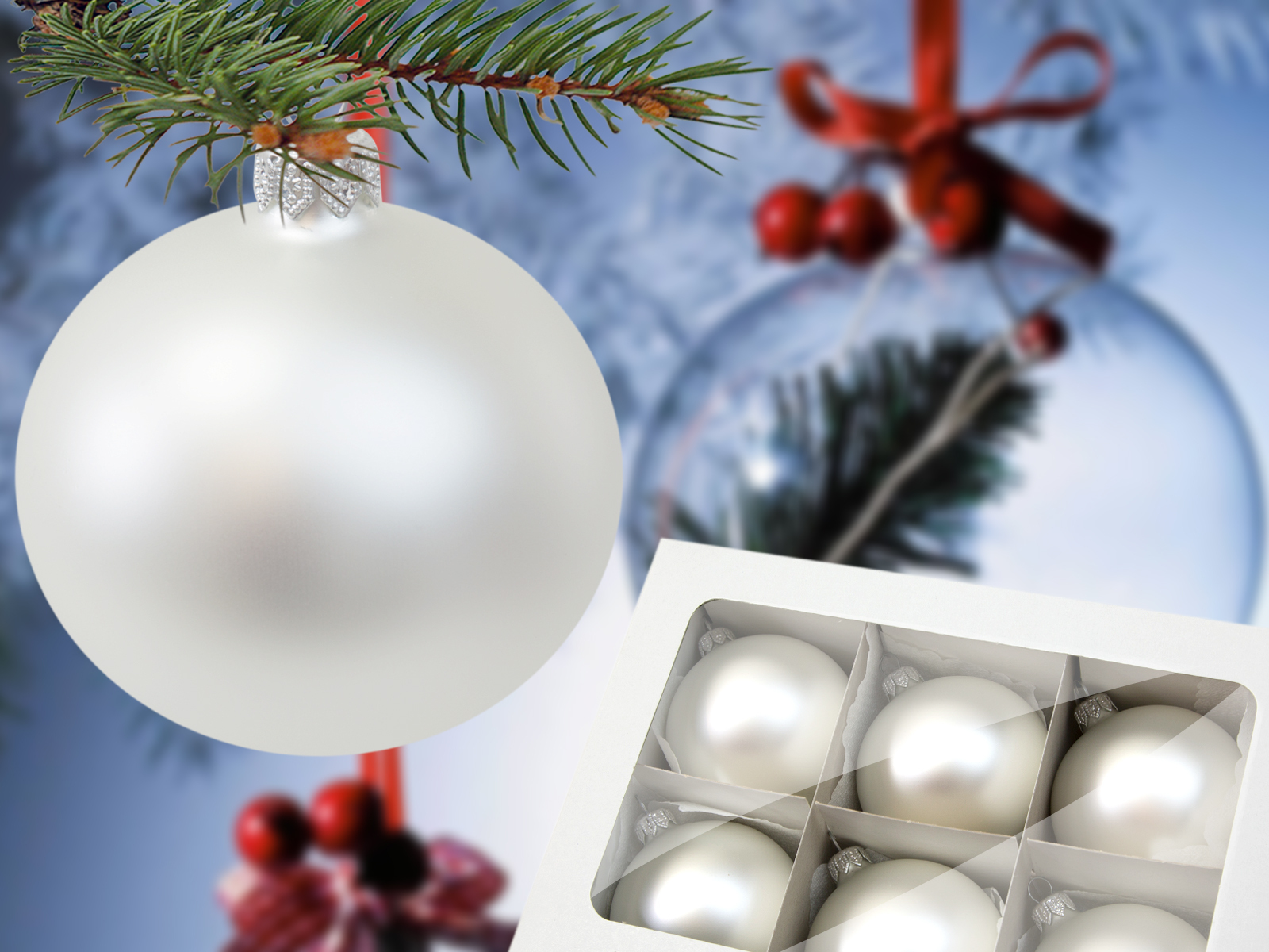 Bombki biała perła mat -  80 mm  bombki choinkowe szklane 6 szt