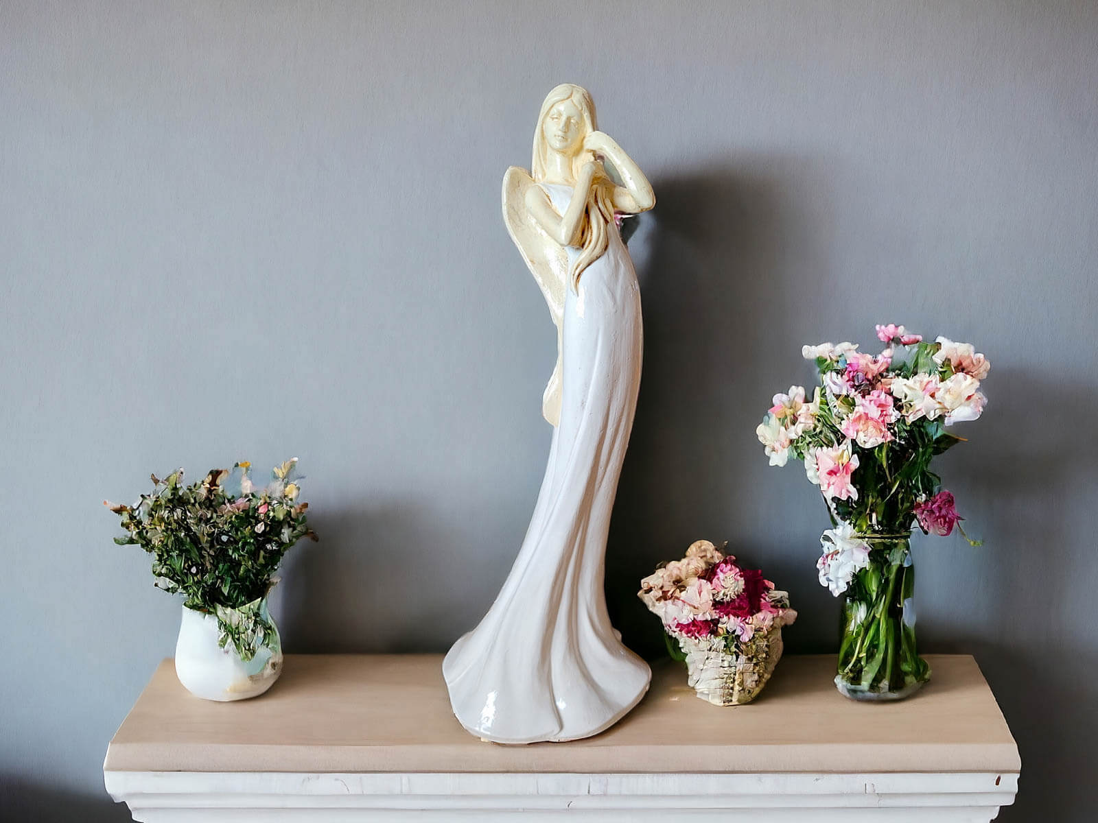 Anioł Elise - biały -  35 x 15 cm figurka dekoracyjna gipsowa
