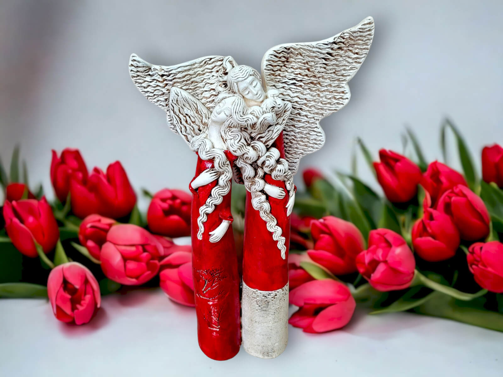 Anioły Para - czerwone - 20 x 9 cm figurka dekoracyjna gipsowa