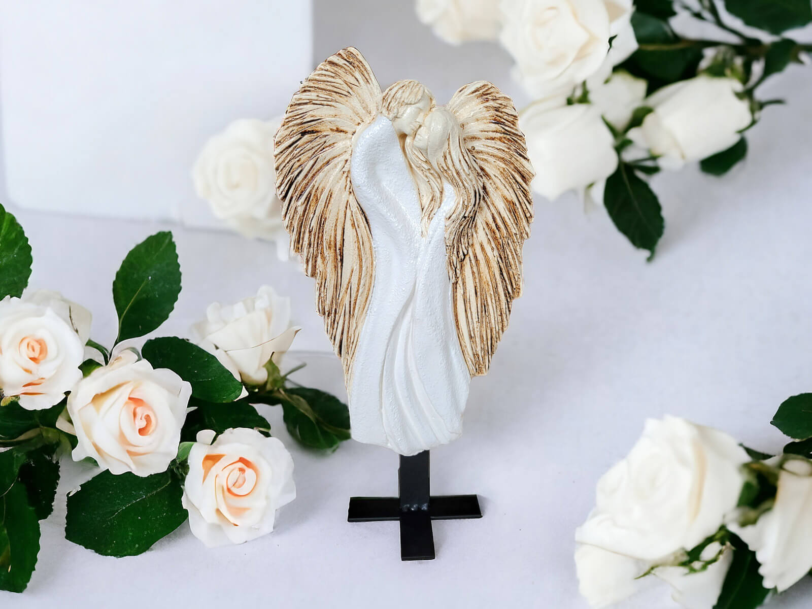 Miłujące Anioły - biało czarne - 37 x 12 cm figurka dekoracyjna gipsowa