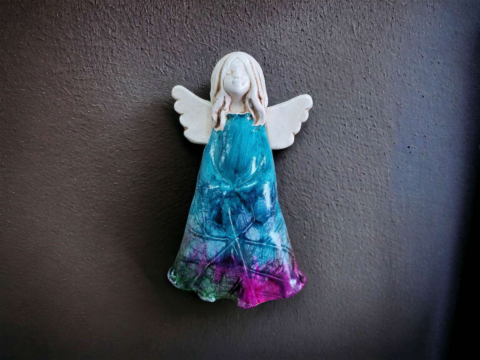 Piękny anioł, wykonany z dbałoscią o detale. Przyciąga wzrok. Mam ich kilka z tej pracowni.