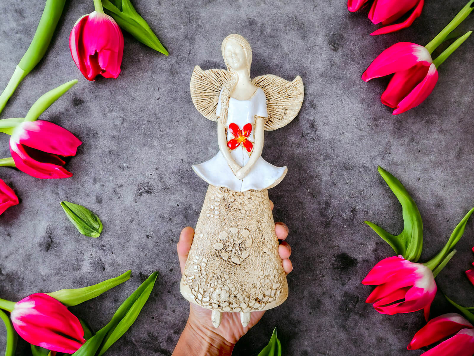 Anioł Julia - czerwony - 27 x 14 cm figurka dekoracyjna gipsowa