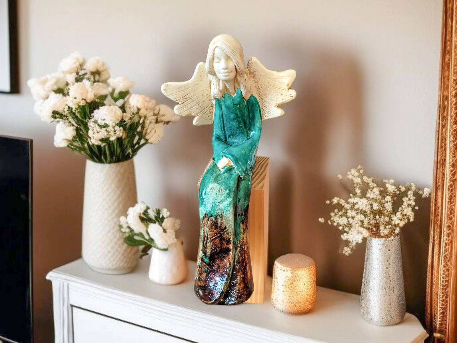Anioł Catherine - turkus -  35 x 15 cm figurka dekoracyjna gipsowa