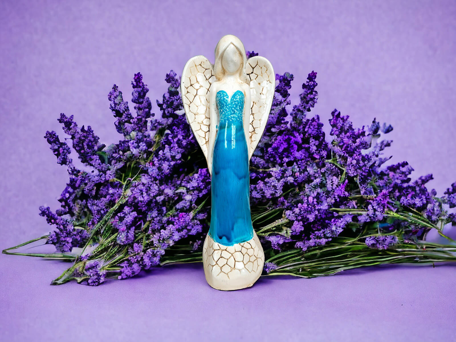 Anioł Pauline - turkus -  20 x 9 cm figurka dekoracyjna gipsowa