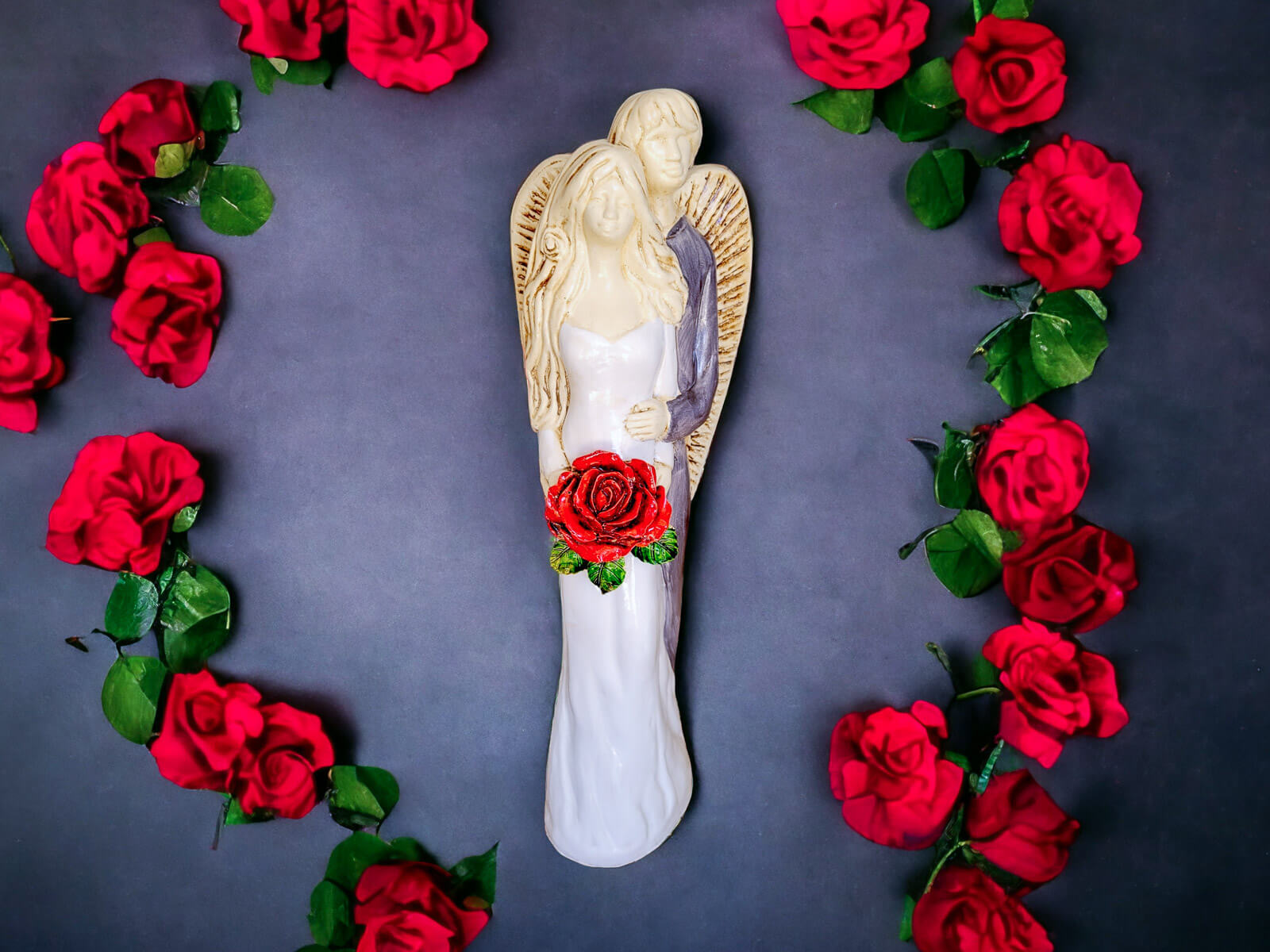 Anioły Para - czerwone - 20 x 9 cm figurka dekoracyjna gipsowa