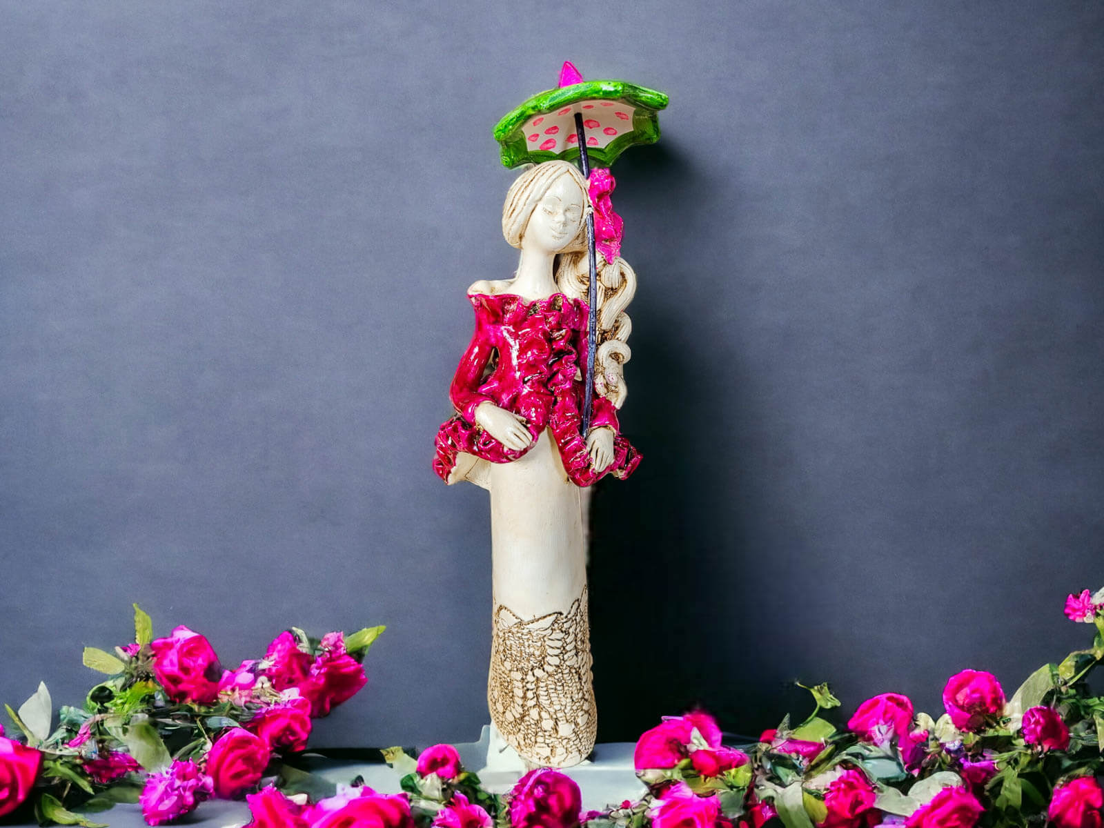 Anioł Julia - czerwony -  27 x 14 cm figurka dekoracyjna gipsowa