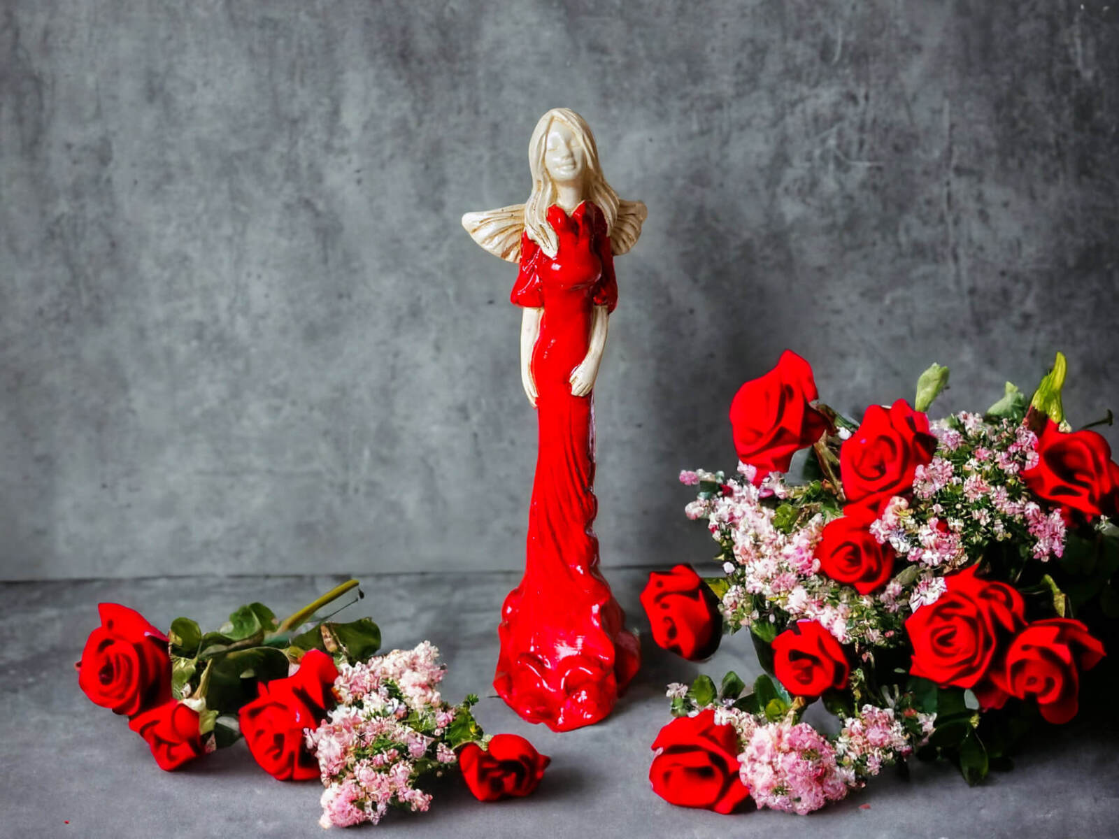 Anioł Sunday Rose - czerwony - 32 x 15 cm figurka dekoracyjna gipsowa
