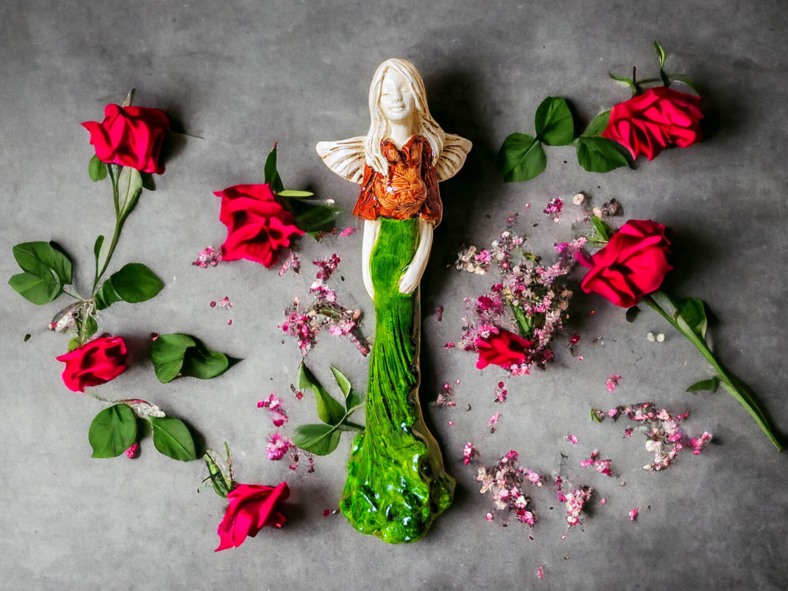 Anioł Julia - czerwony -  27 x 14 cm figurka dekoracyjna gipsowa