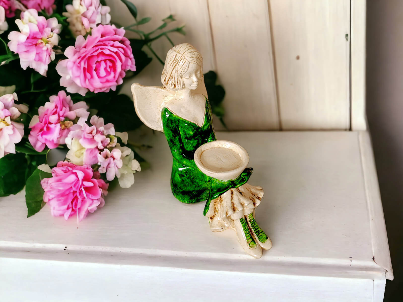 Anioł Margaret - zielony -  32 cm figurka dekoracyjna gipsowa