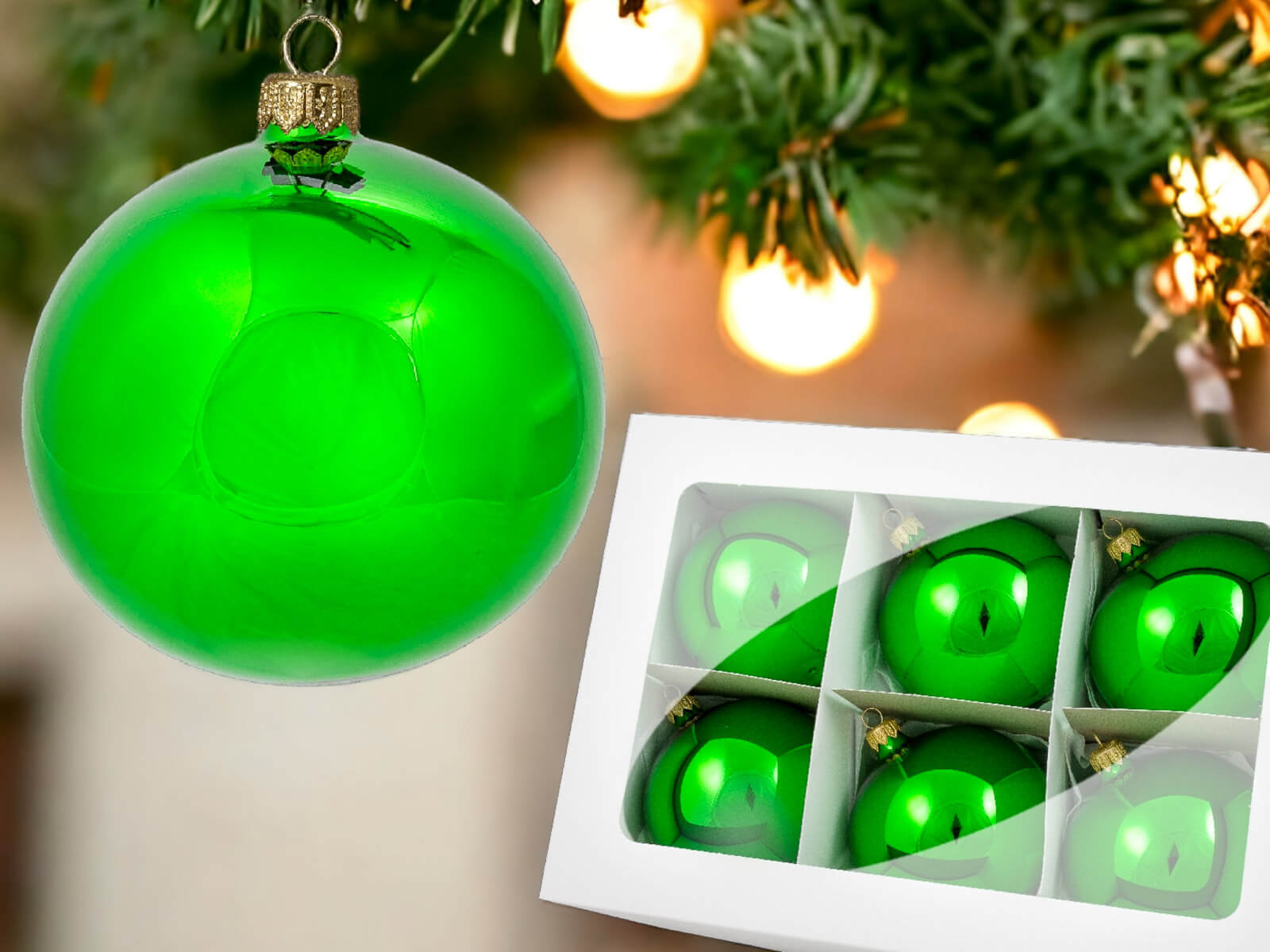 Bombki zielony błysk - 80 mm bombki choinkowe szklane 6 szt