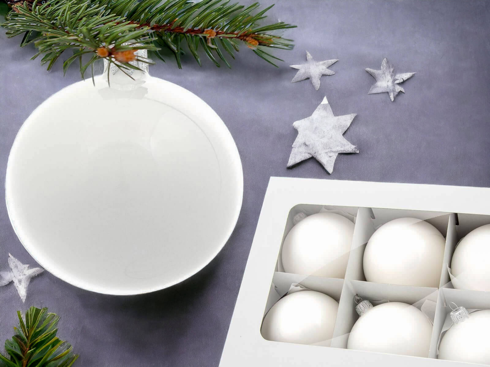 Bombki biały opal -  80 mm  bombki choinkowe szklane 6 szt