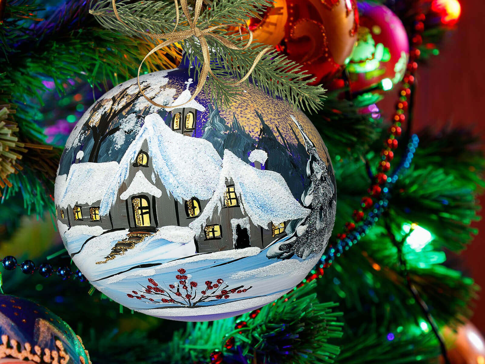 Zimowy krajobraz nocą -  120 mm bombka choinkowa szklana