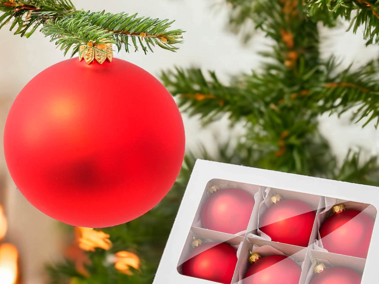 Bombki czerwony mat - 100 mm bombki choinkowe szklane 6 szt