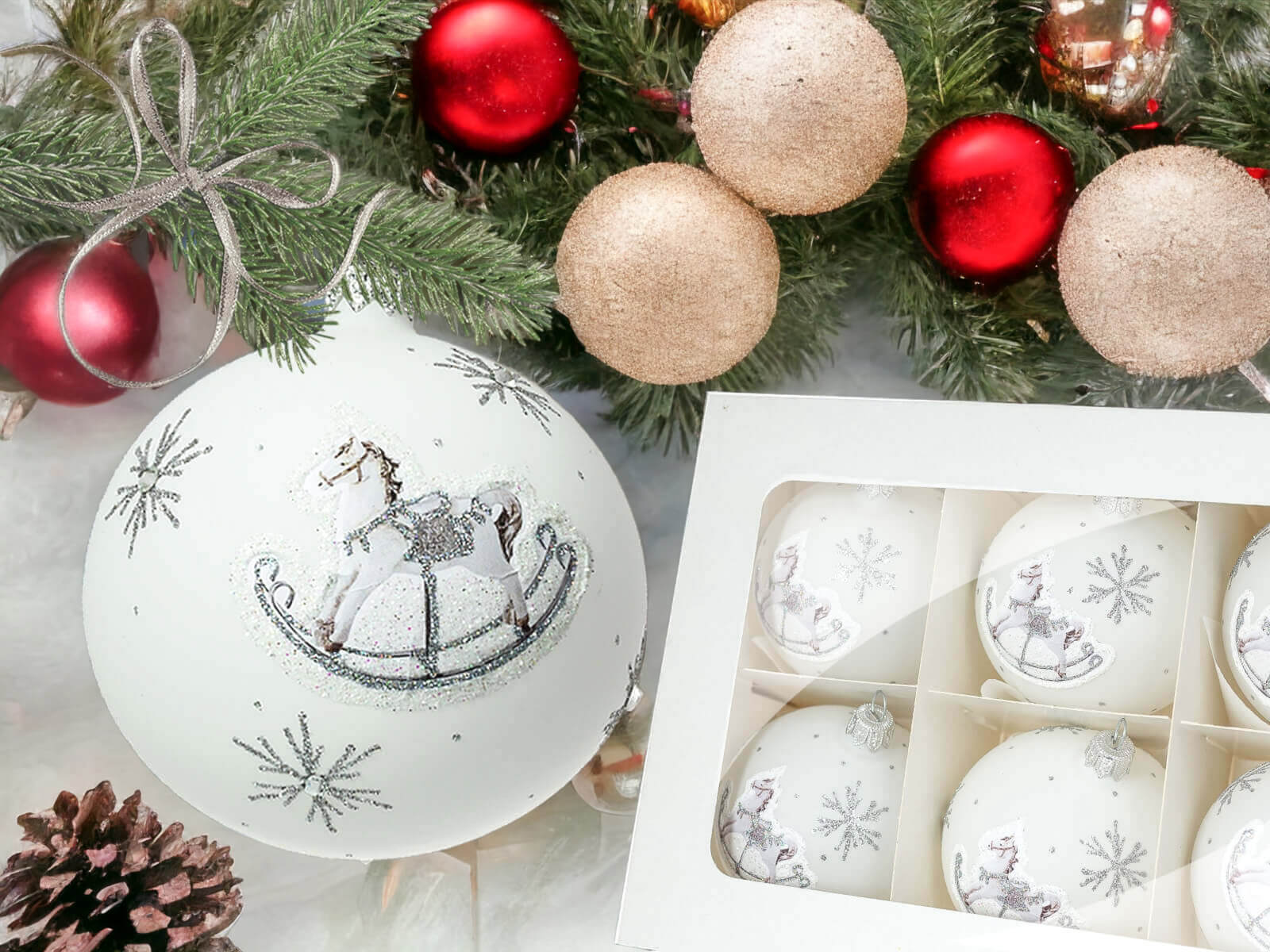 Bombki srebrne jelonki śnieg biały  mix -  100 mm bombki choinkowe szklane
