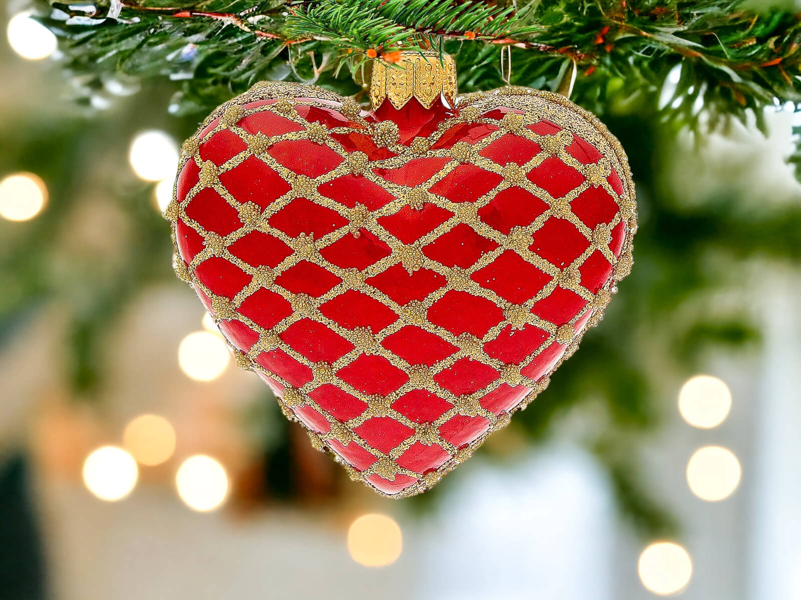 Bombka serce czerwono złote - 8 x 7 cm ozdoba szklana 1 szt