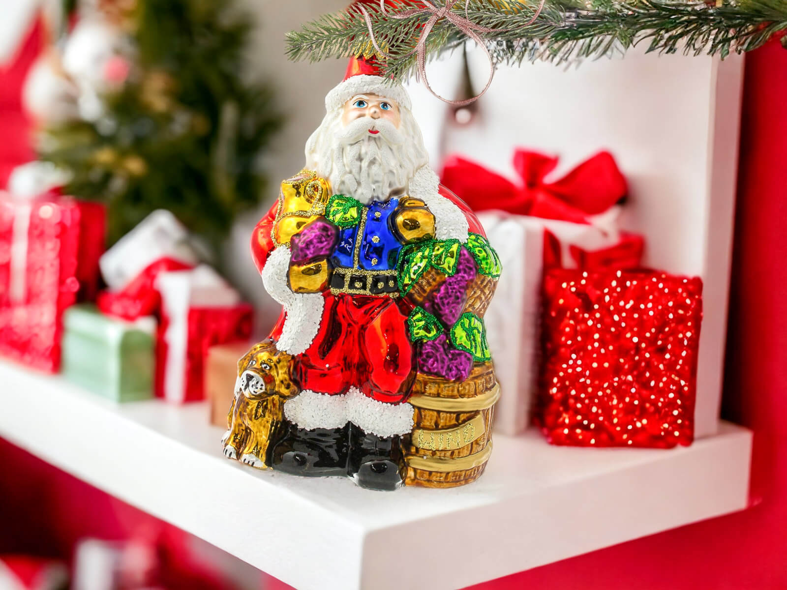 Mikołaj i pies - dekoracja kształtka - 17 x 10 cm bombka choinkowa szklana