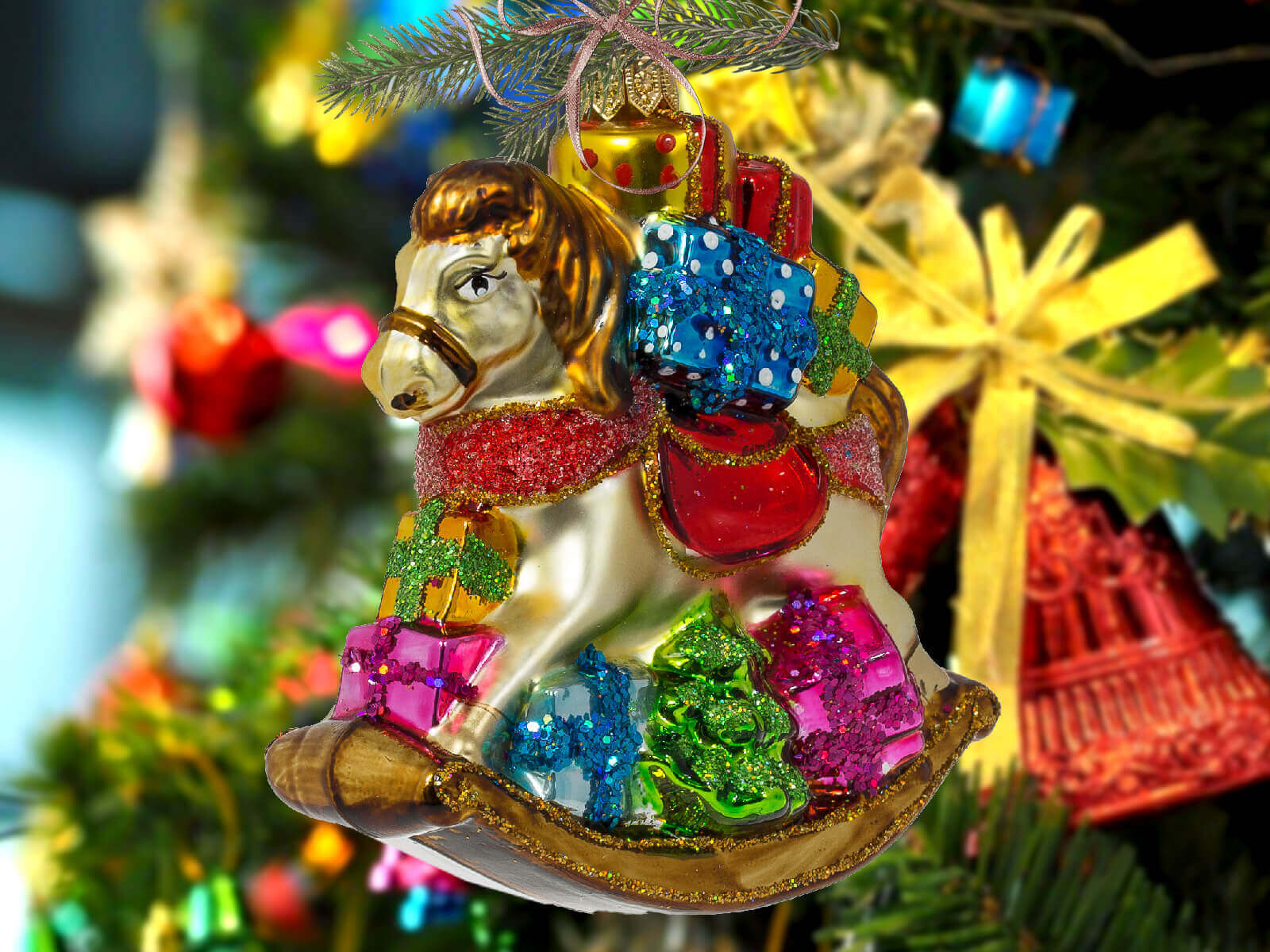 Konik na biegunach - dekoracja kształtka - 8 x 9 cm bombka choinkowa szklana