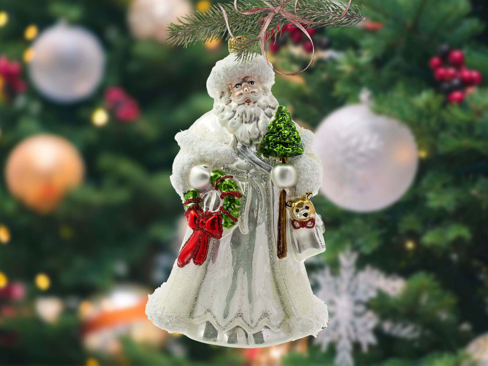Biały Mikołaj - dekoracja kształtka - 18 x 9 cm bombka choinkowa szklana