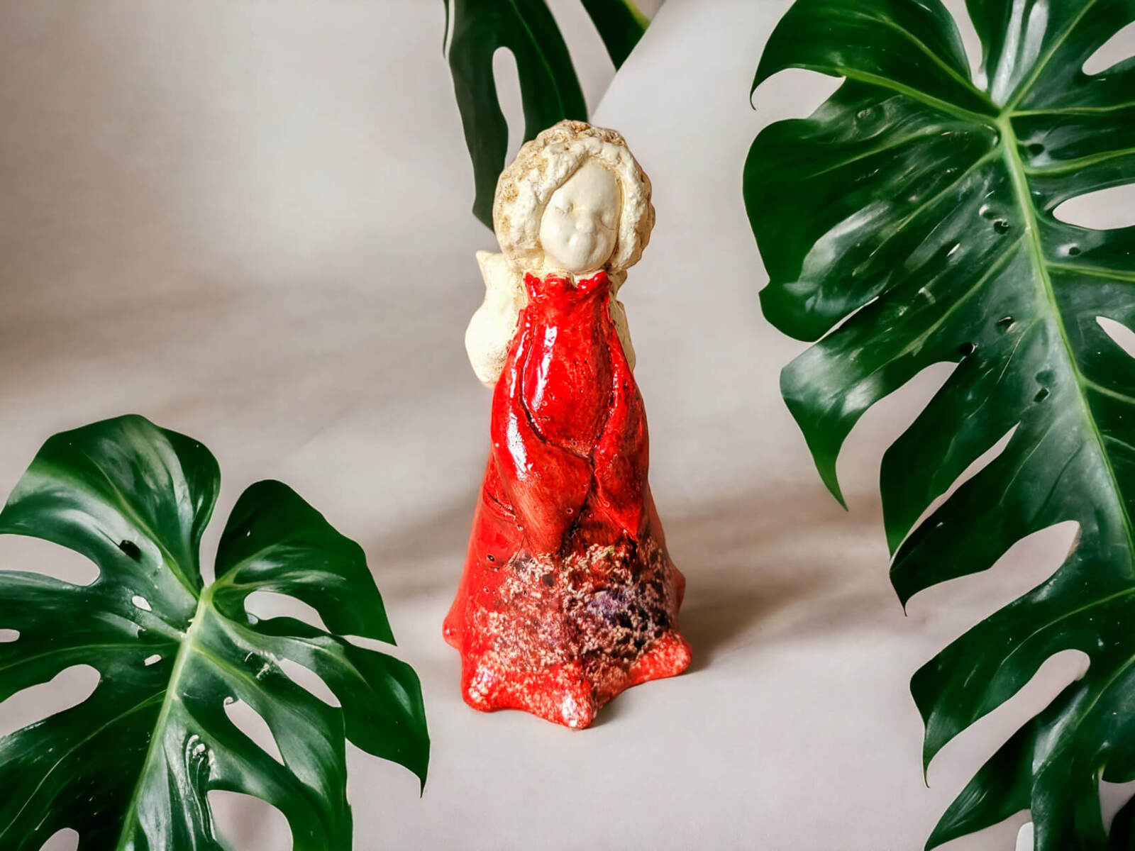 Anioł od Św. Rity - czerwony -  47 x 25 cm figurka dekoracyjna gipsowa