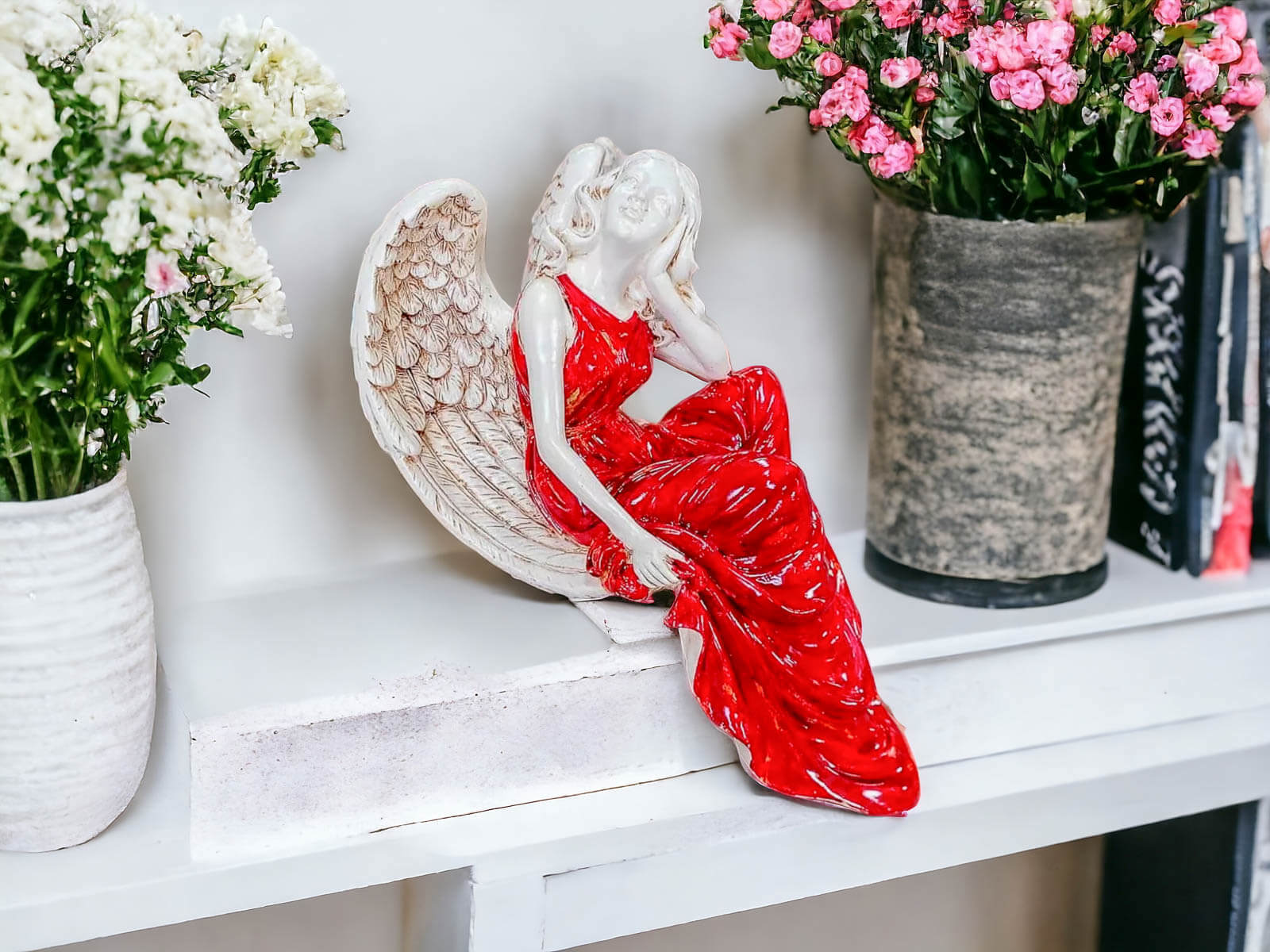 Anioł Julia - czerwony - 27 x 14 cm figurka dekoracyjna gipsowa
