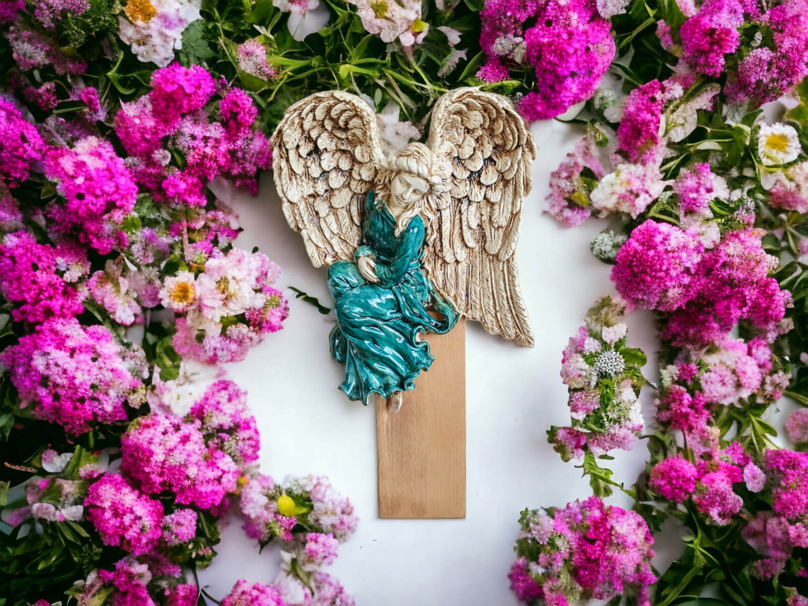 Aniołek Matilda  - turkus ciemny -  15 cm figurka dekoracyjna gipsowa