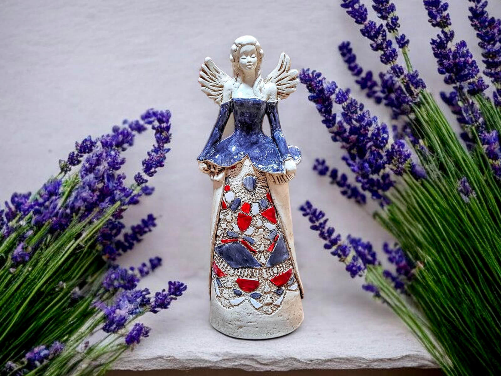 Anioł piękny, super się prezentuje. Uwielbiam stojące anioły ten jest już 5. Piękna kolorystyka. Stoi sobie Margaret na półce wśród kwiatów.