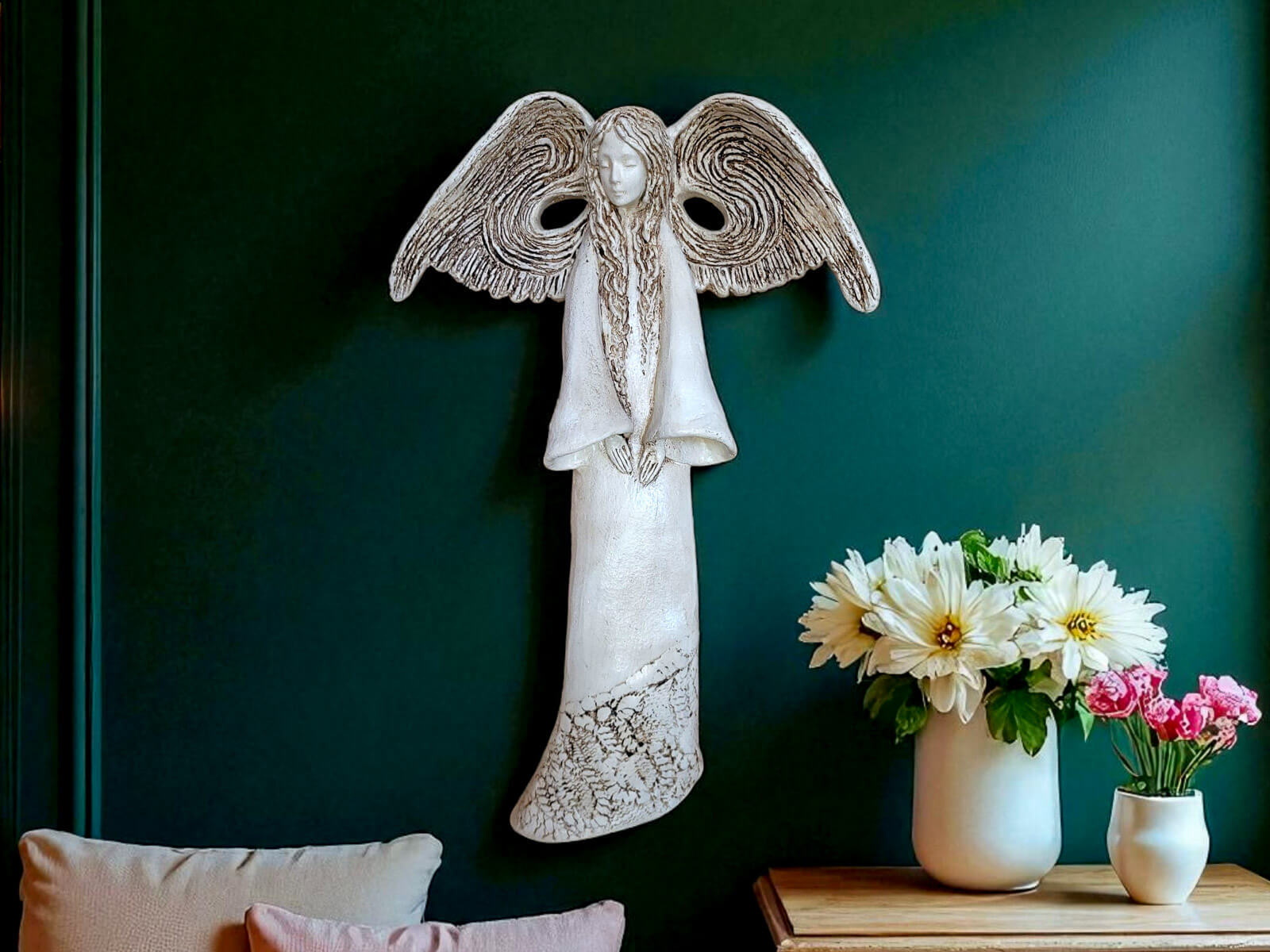 Anioł Abdiel - biały -  35 x 15 cm figurka dekoracyjna gipsowa